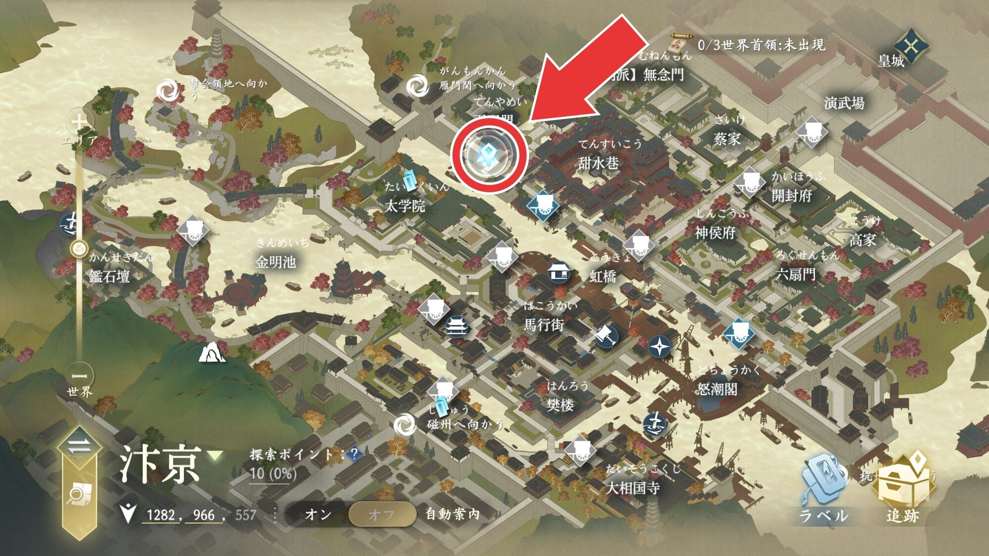 隠し通路を抜けた後は、任務が一度途切れます。再度ガイドから「慧眼の無情」を選択して、汴京の神侯府(944,960)へ向かいましょう。