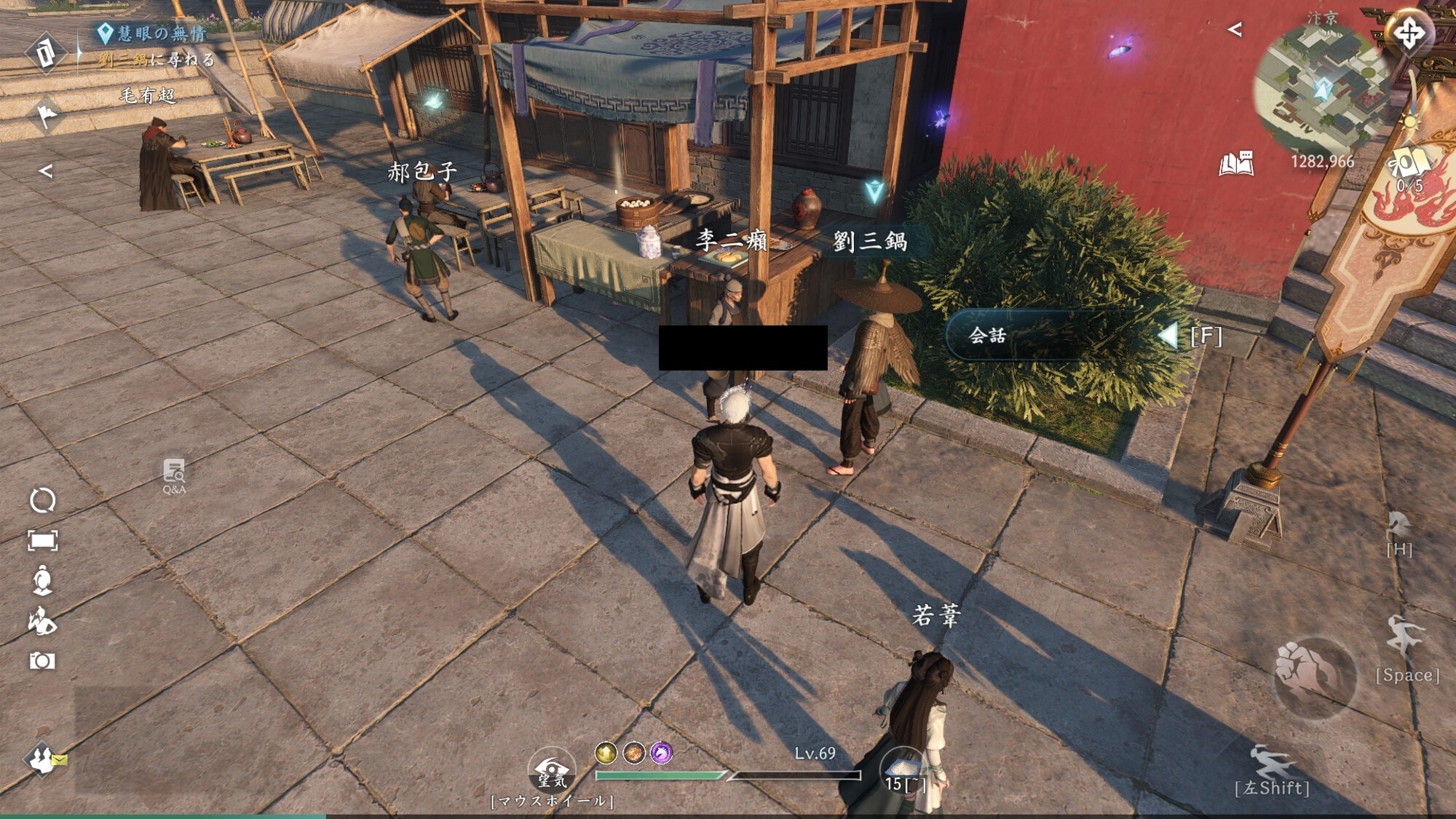 慧眼の無情の江湖任務は、汴京(1284,966)にいる李二癪(りじらい)から受注できます。汴京の甜水巷(てんすいこう)に移動して天野盟(てんやめい)方向に進みましょう。