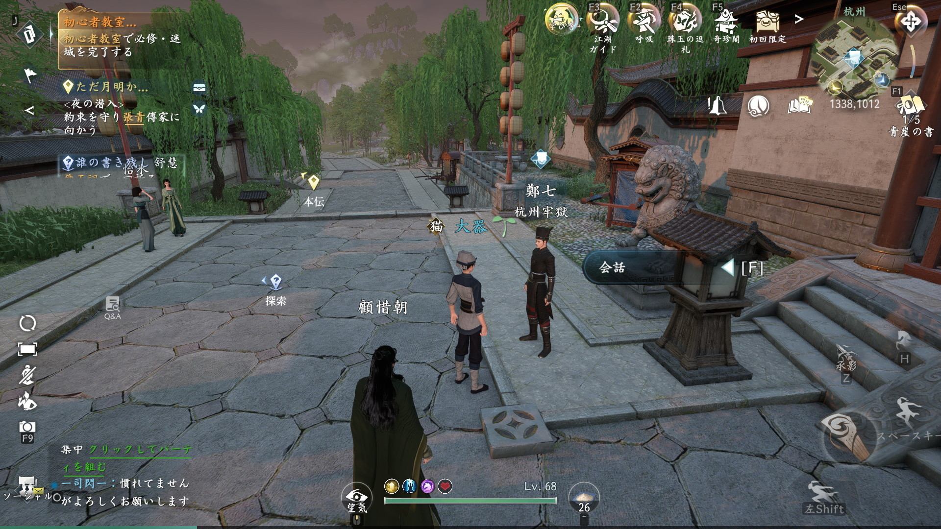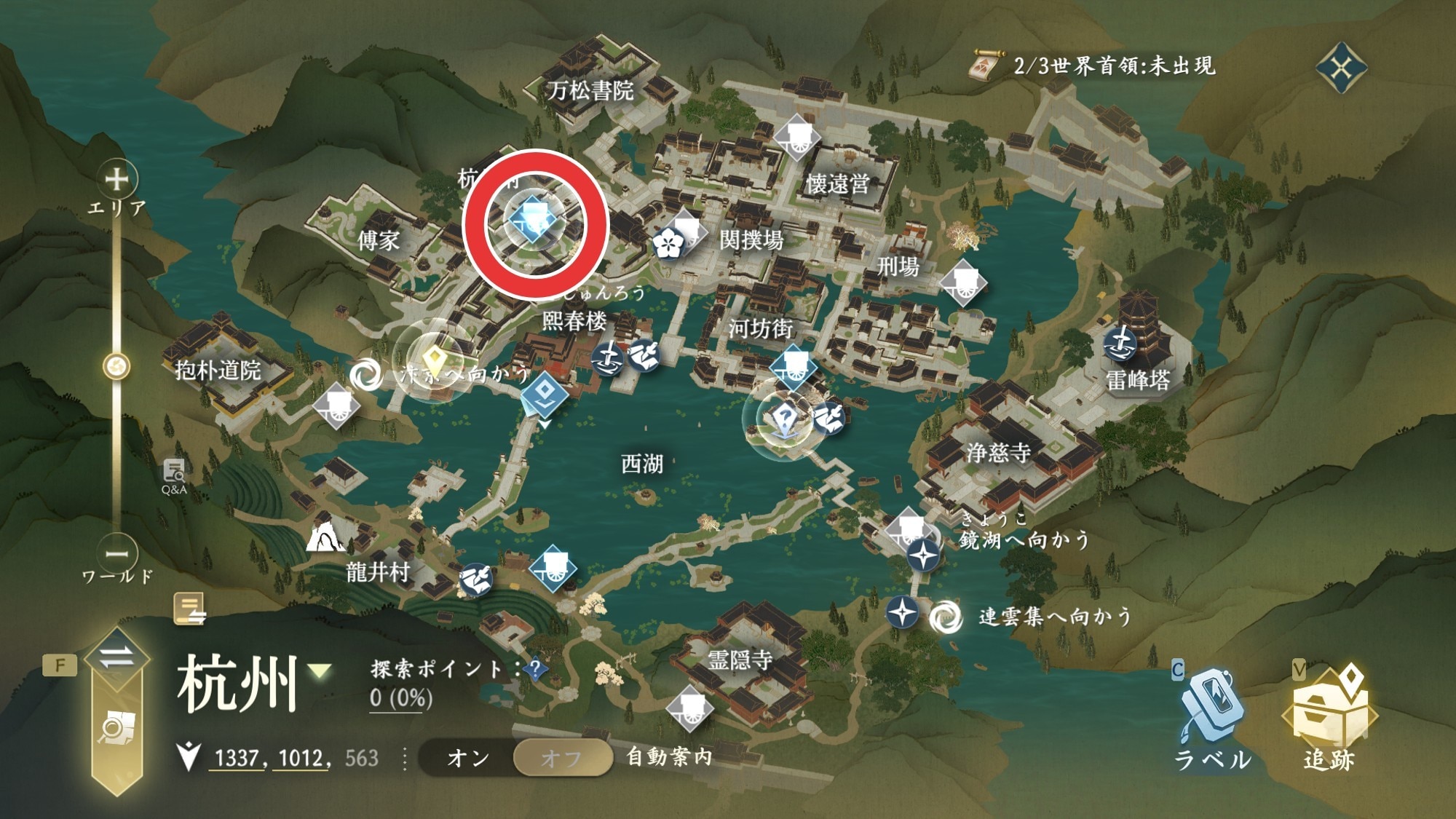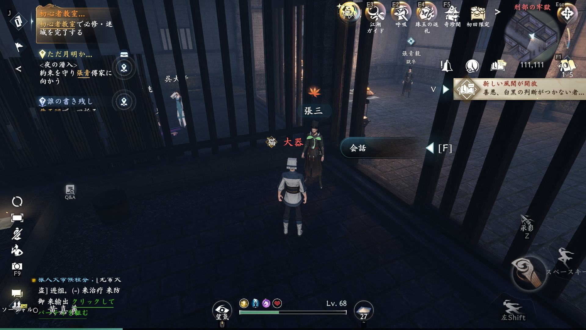 窮地の死闘の発生場所である刑部の牢獄へは、杭州の座標(1337,1012)のファストトラベルの利用がおすすめです。話しかけて「牢獄に入る」を選択しましょう。