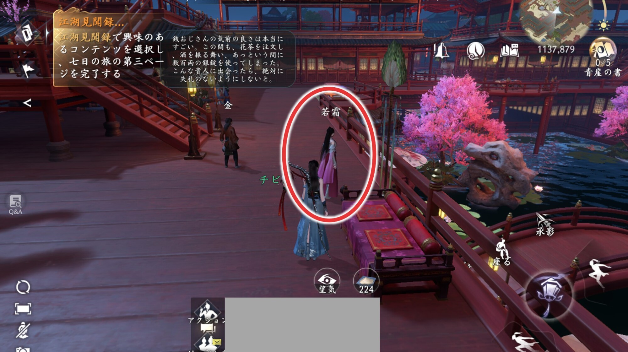 | 4 | 汴京に戻りクエストを追跡して若霜に塩漬け梅を渡す |