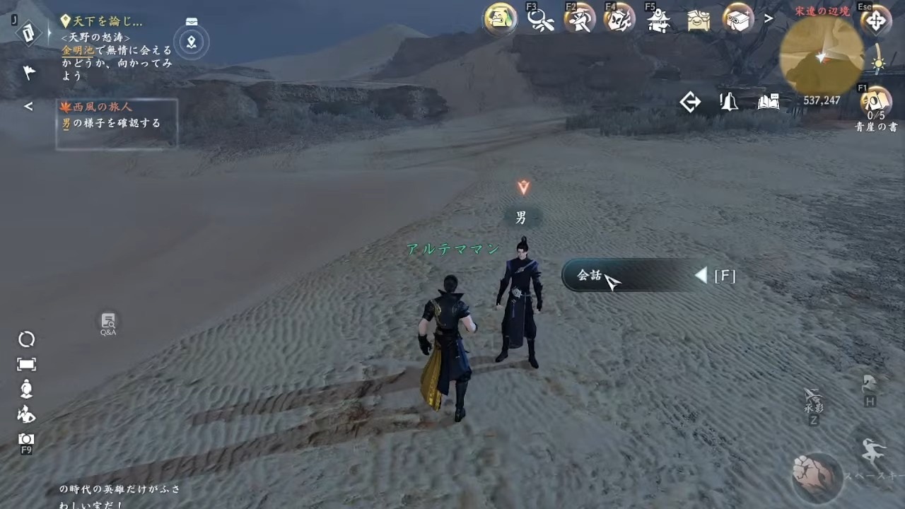 西風の旅人の奇遇任務の発生場所は、宋凌の辺境座標(538,254)です。夜に座標の場所に行くと奇遇が発生し、自動的にイベントが始まります。