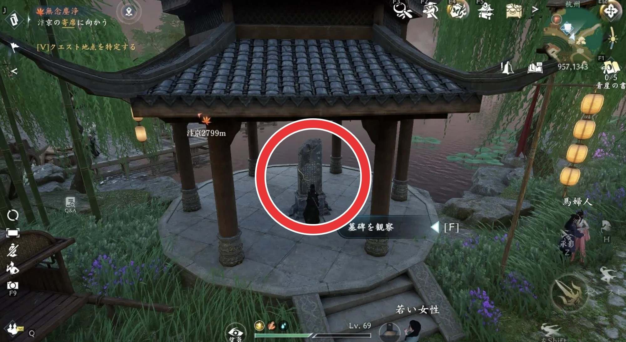 無念塵浄の奇遇任務の発生場所は、杭州の座標(957,1343)です。奇遇「錦傘赤衣」完了後であれば「無念門に加入する」を選んで発生します。