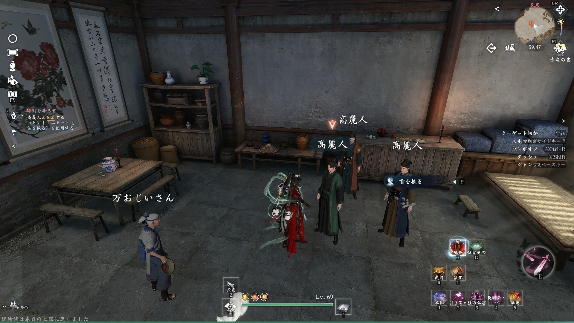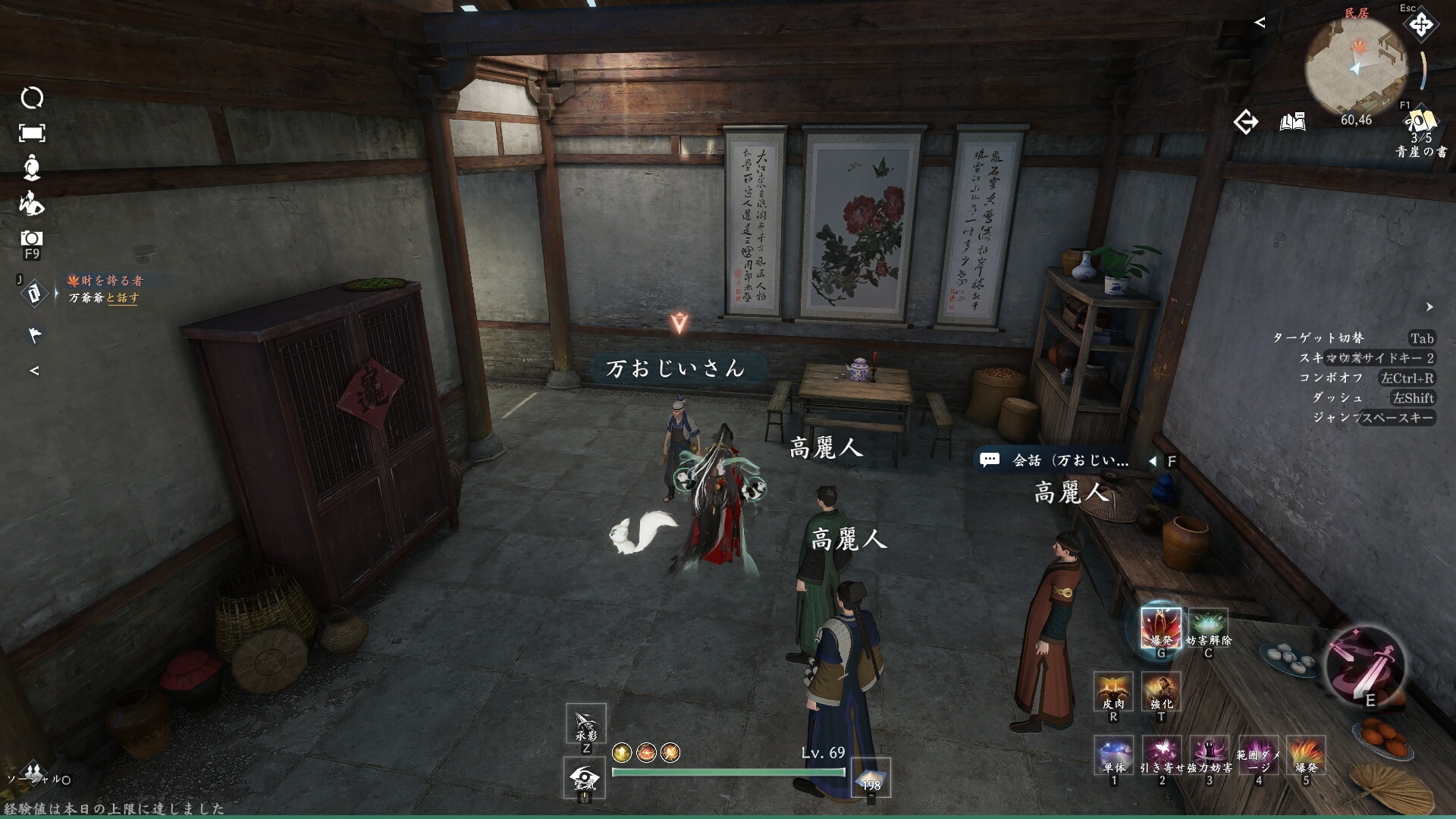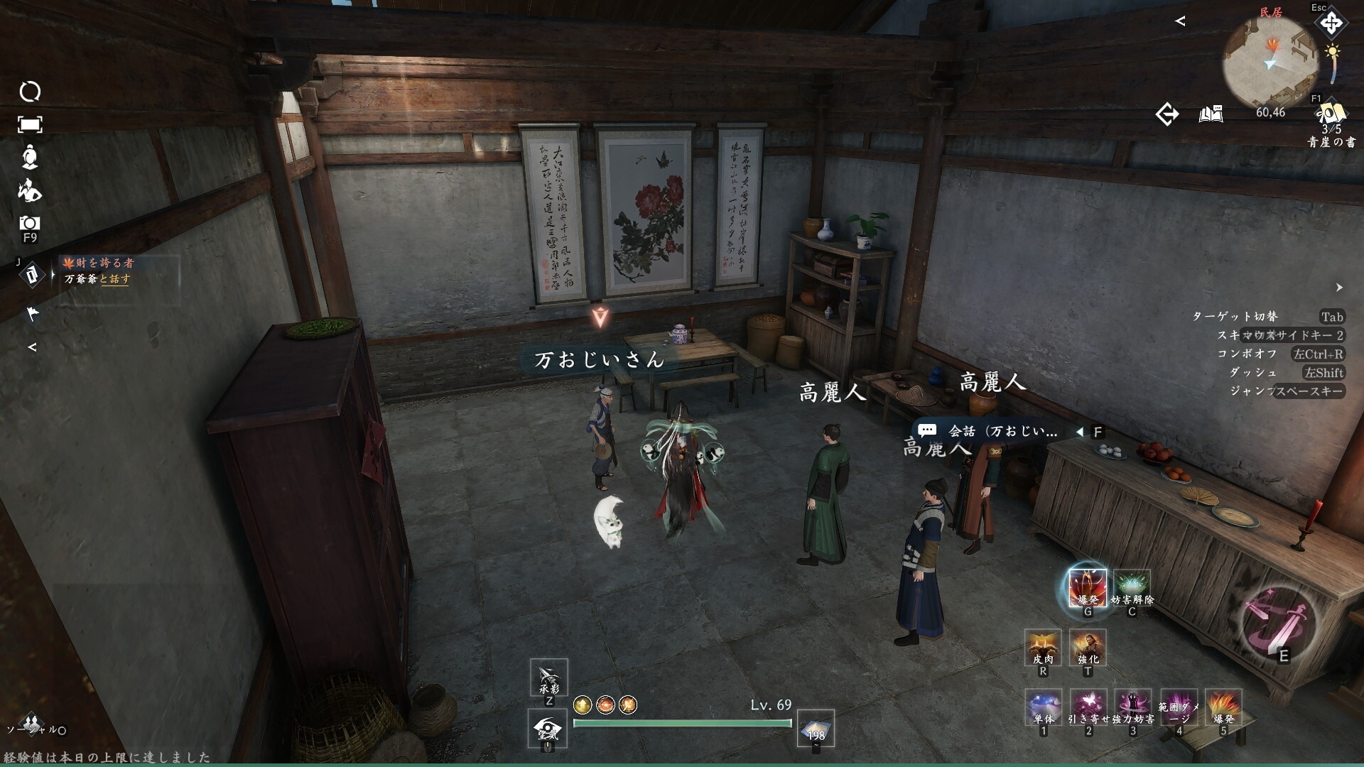 | 3 | 拡大する緑色の服の高麗人と会話 |
