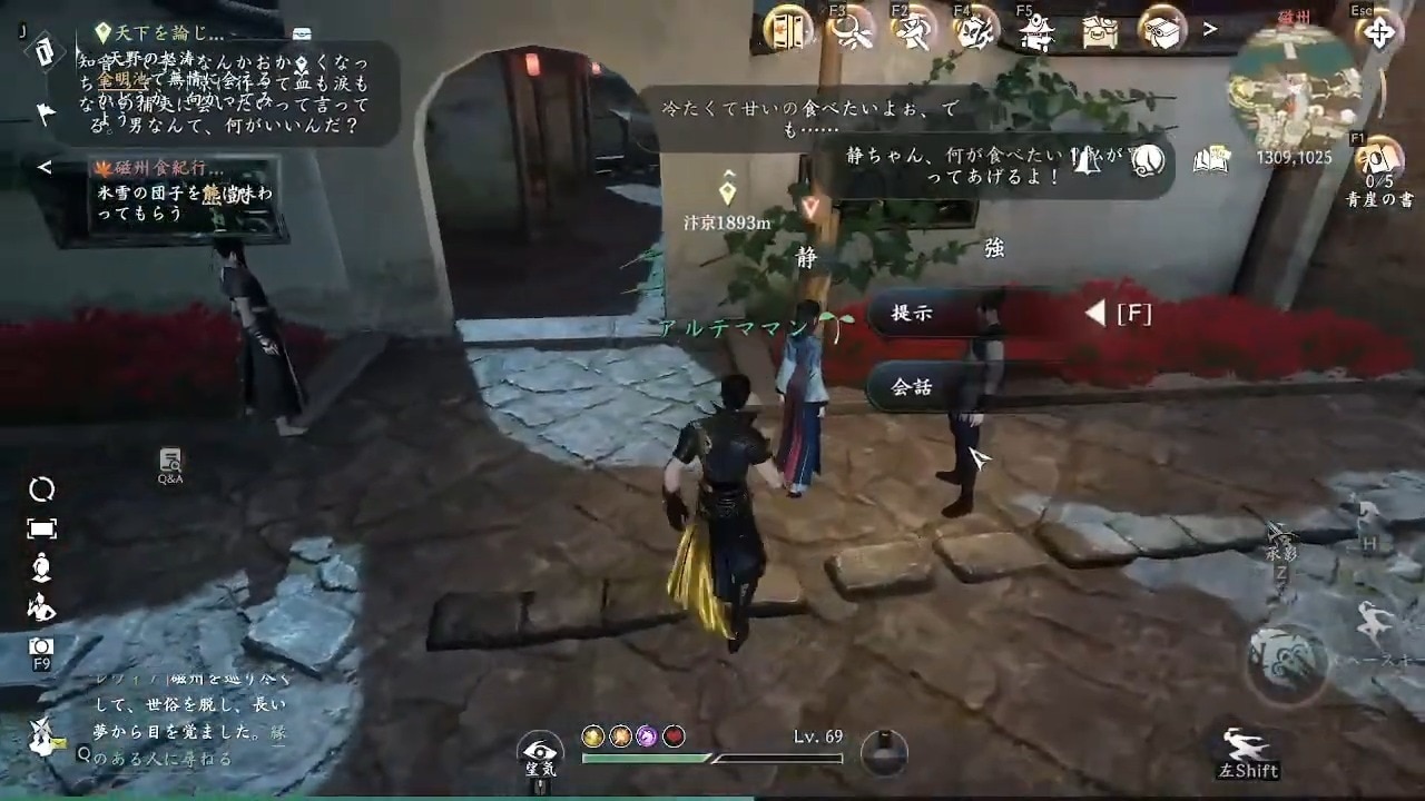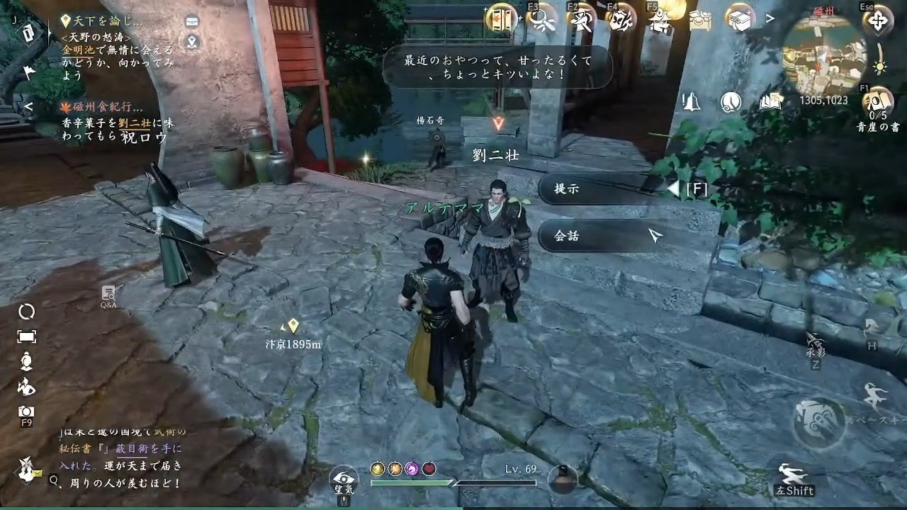 磁州食紀行は、三まで続く奇遇です。磁州食紀行・一のクリア後、磁州の座標(1298.1042)に戻って遊さんに話しかけることで磁州食紀行・二を受注できます。