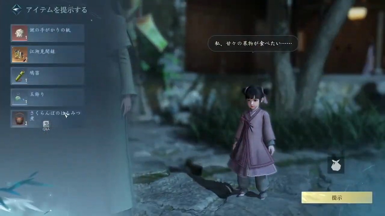 | 4 | 拡大する遊さんの元に戻って報告した後、すぐ近くの小英と細柳にさくらんぼのはちみつ煮を渡す |