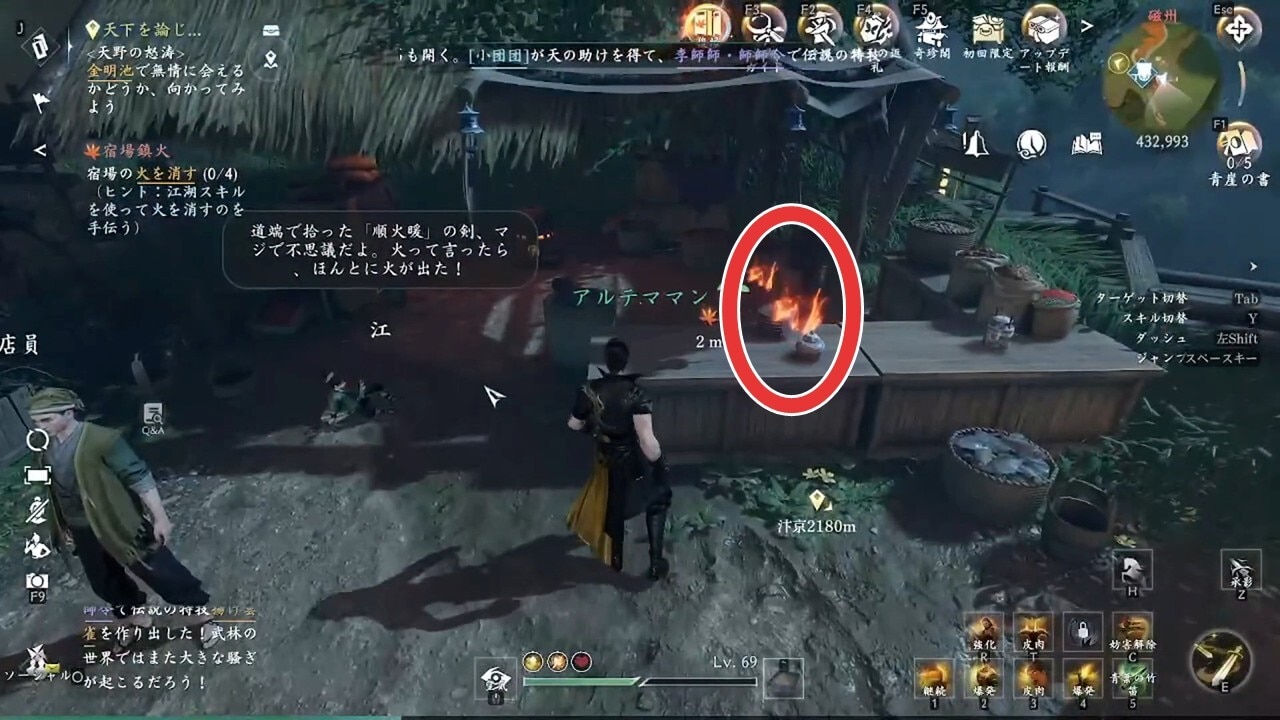 逆水寒の宿場鎮火(やどばちんか)の発生場所と報酬をご紹介。攻略手順についても記載しています。