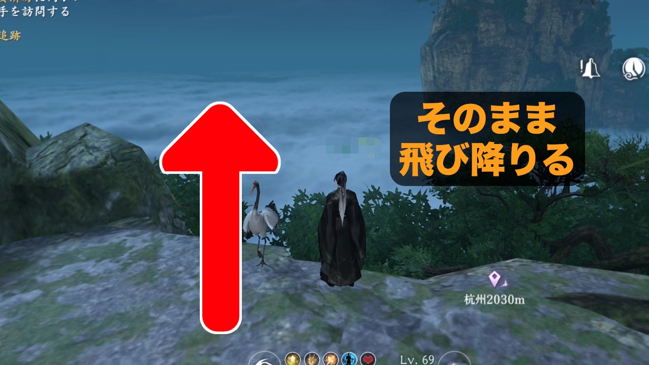 夕霞に舞う翼の奇遇任務の発生場所は、三清山の任意の崖から飛び降りれば良いです。崖から飛び降りた時、ランダムな奇遇が受注されます。
