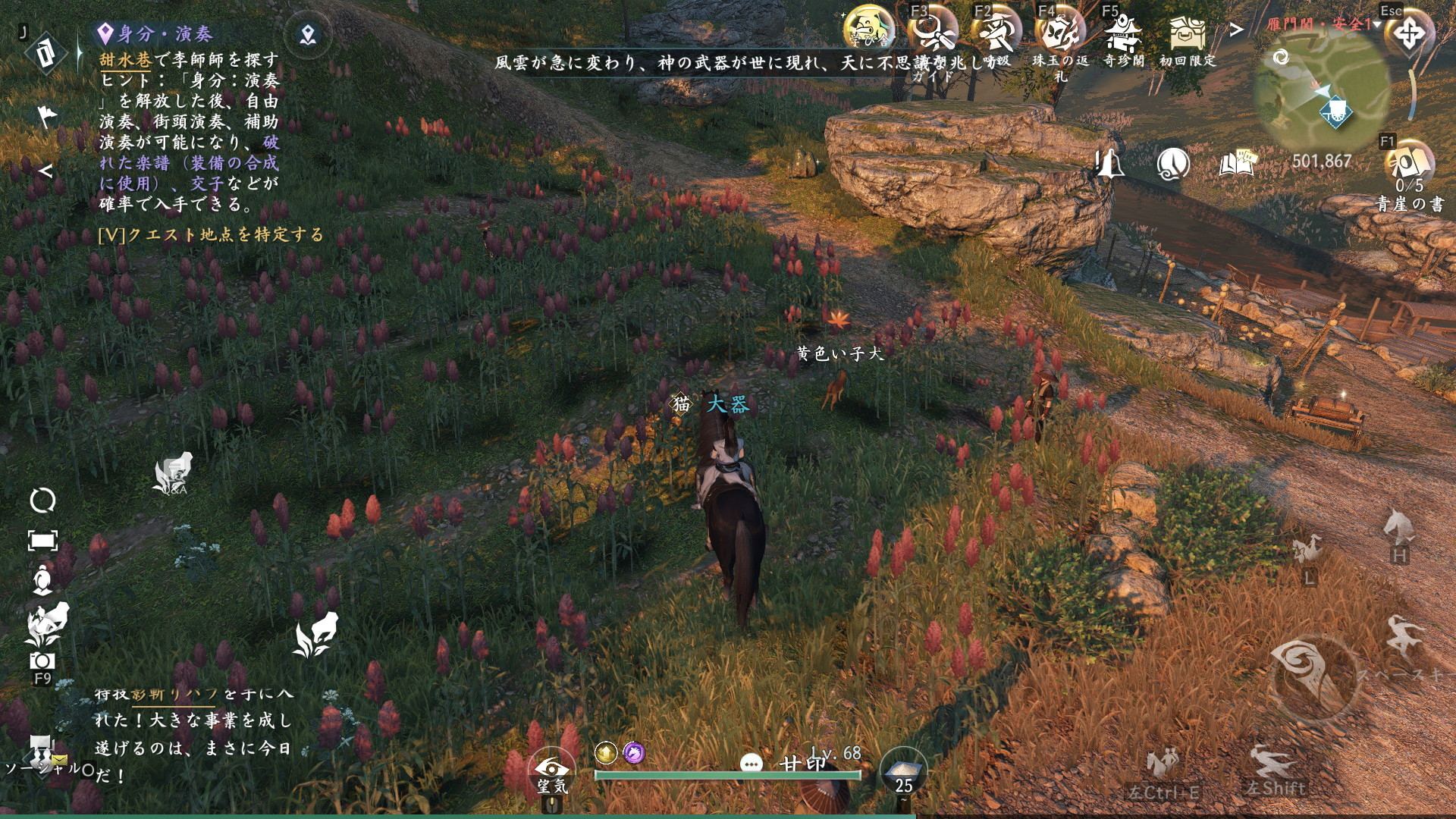 犬の吠え声はどこからの奇遇任務の発生場所は、雁門関の座標(508,868)です。黄色い子犬に近づくと発生します。発生しない場合は、行き来して何度か試しましょう。