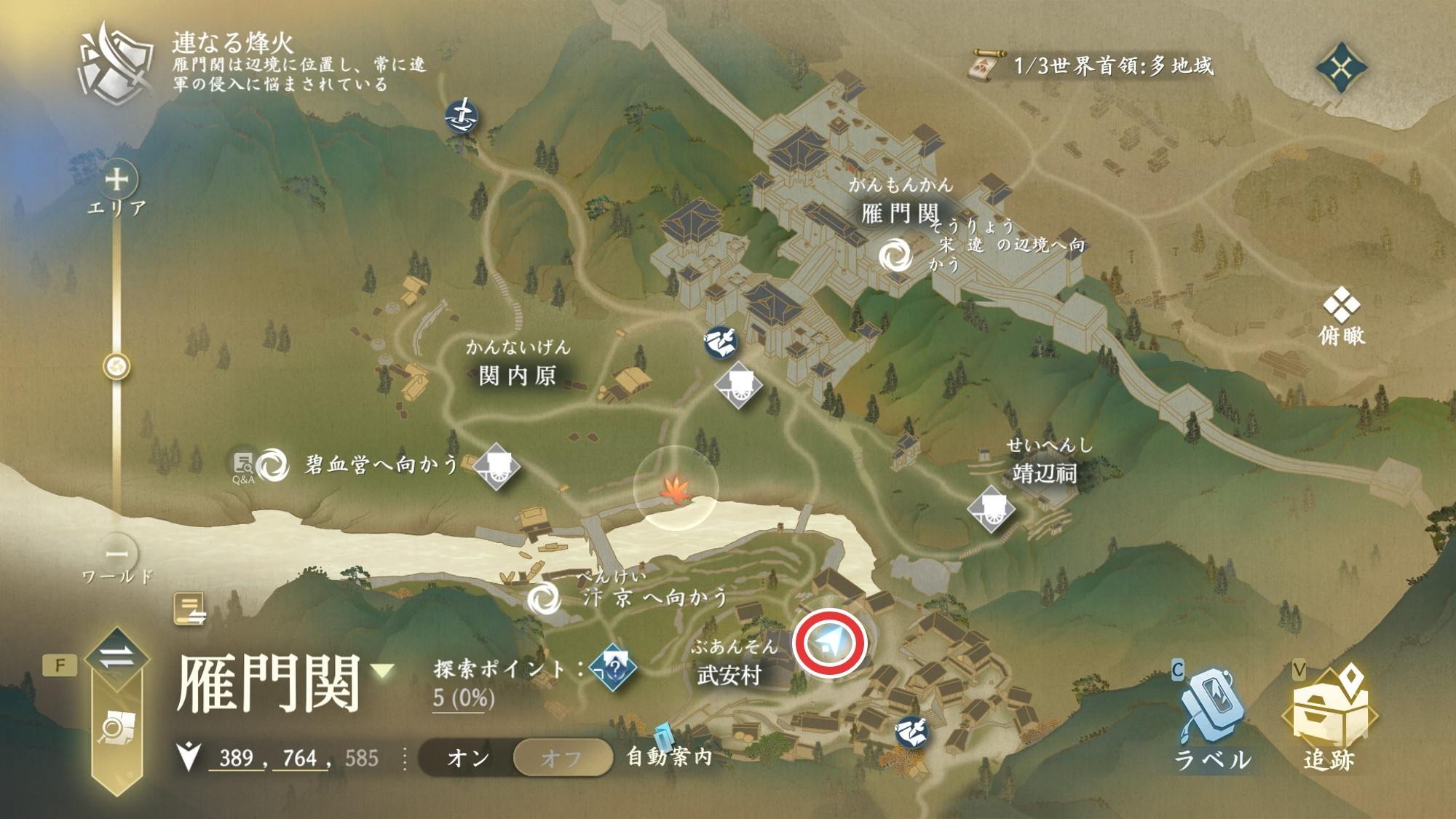 | 1 | 拡大する雁門関(566,726)で江湖の侠客に体当たり→「観察」使用 |