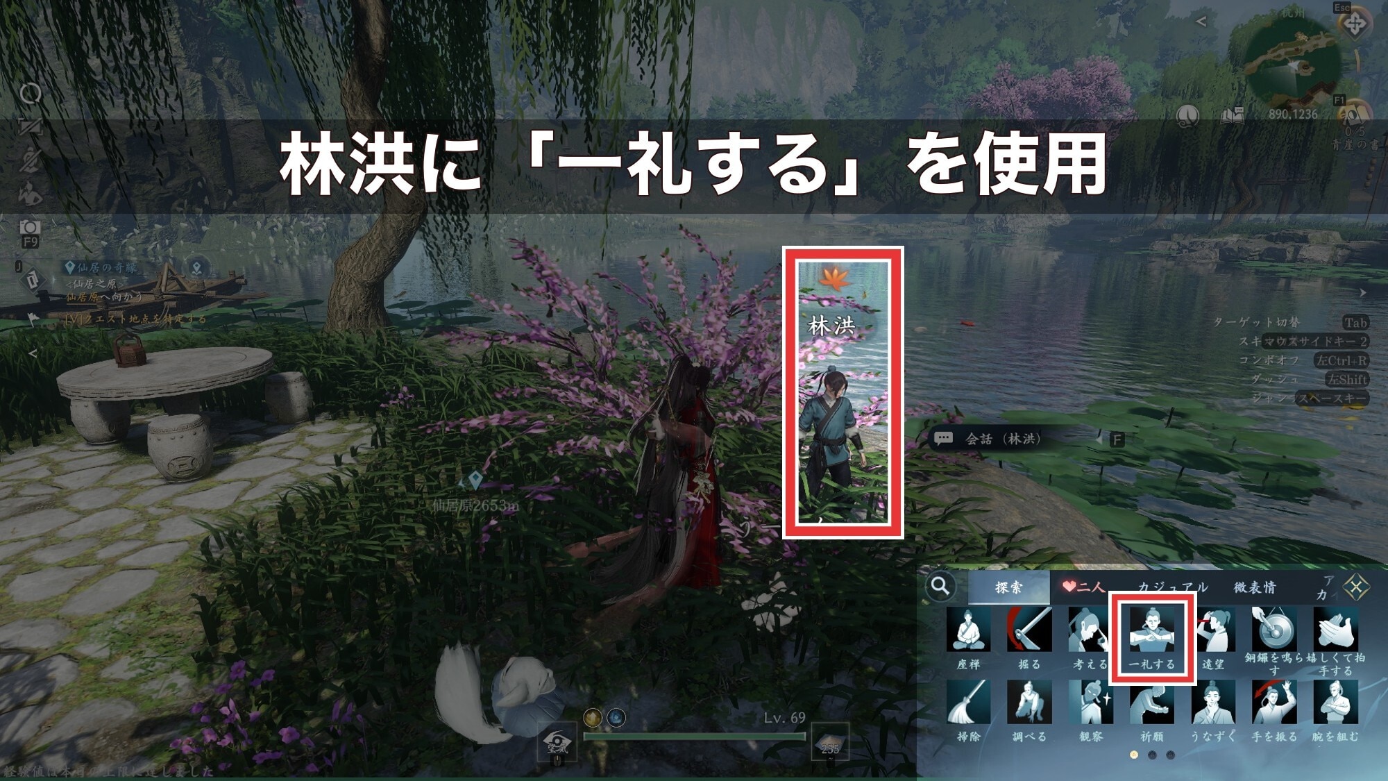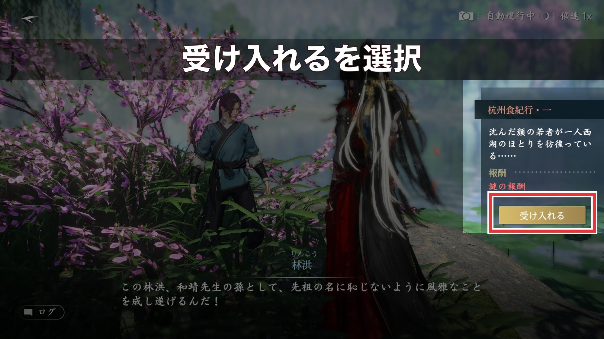 | 2 | 拡大する林洪に話しかけ「受け入れる」を選択 |