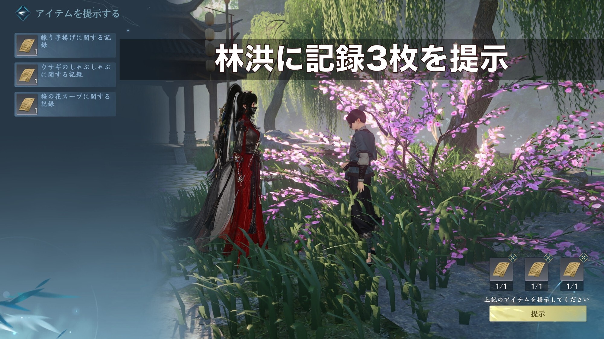 | 3 | 拡大する林洪と再度会話し、記録を3枚集める※順不同 |