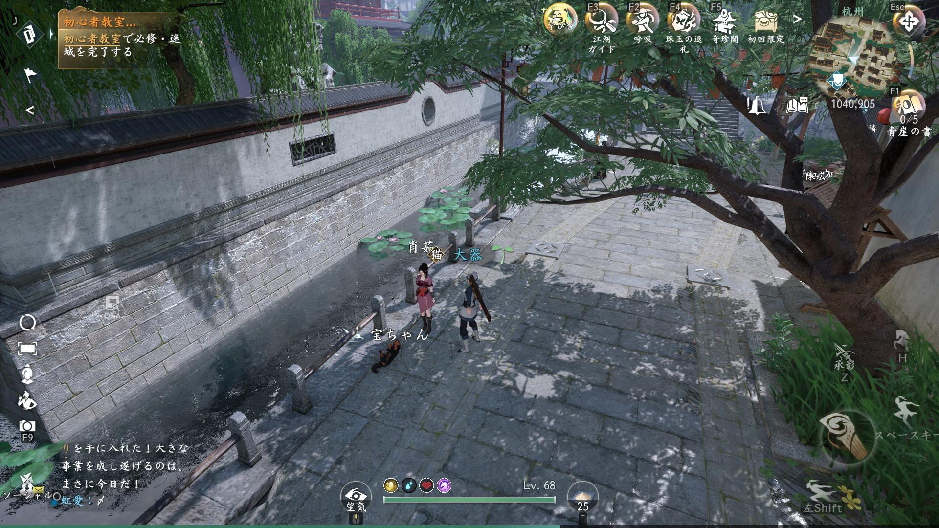 拡大する肖茹と宝ちゃん世間事件「犬と胡餅」が発生する、杭州の河坊街の座標(1040,905)へ向かいましょう。料理の「胡餅」を持った状態で肖茹と宝ちゃんに近づくと発生します。