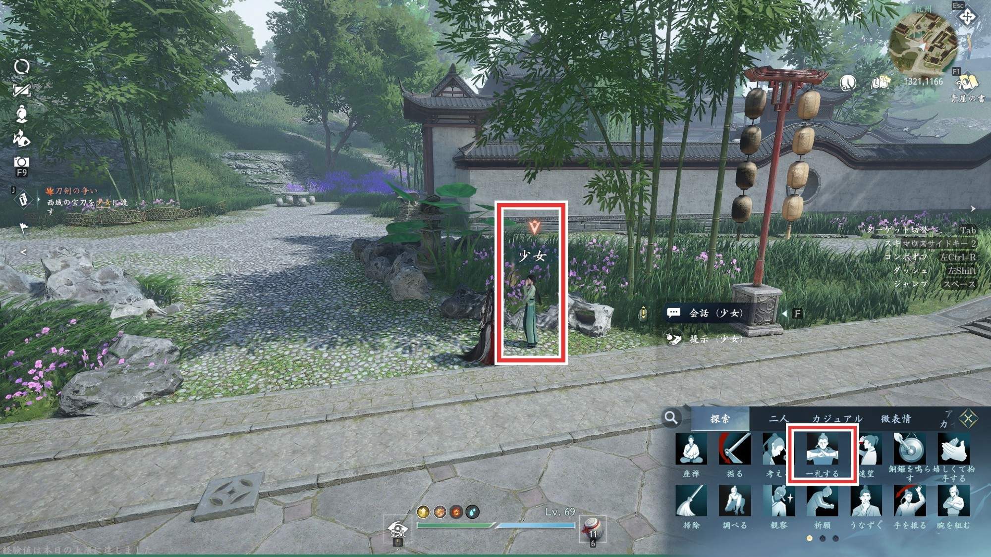 | 1 | 拡大する杭州(1321,1165)で少女に「一礼する」を行い話を聞く |