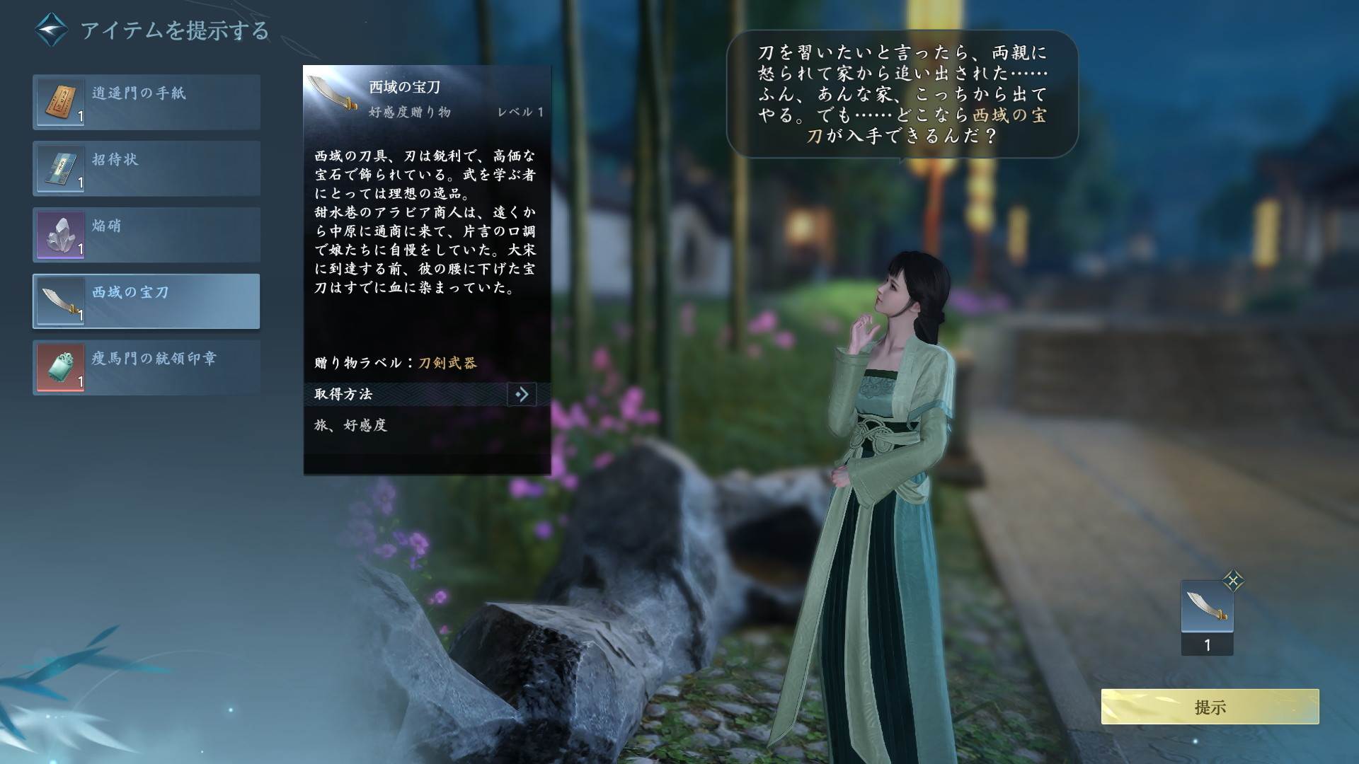 | 3 | 拡大する少女に「西域の宝刀」を提示 |