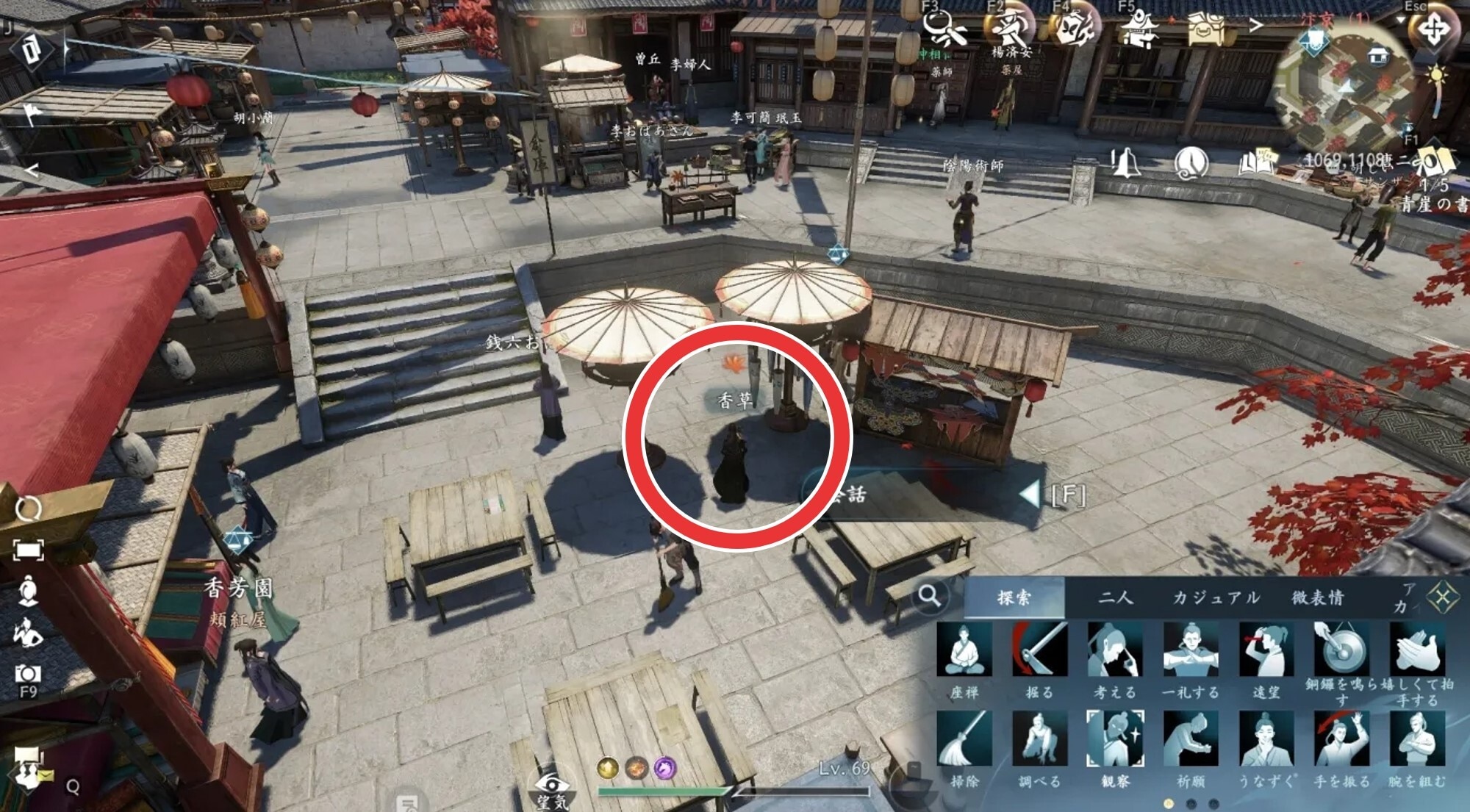巧みな泥人形の奇遇任務の発生場所は、汴京の座標(1069,1108)です。座標にいる少女「香草」の前でアクション「観察」を行うと発生します。発生後に香草に話しかけて受注しましょう。