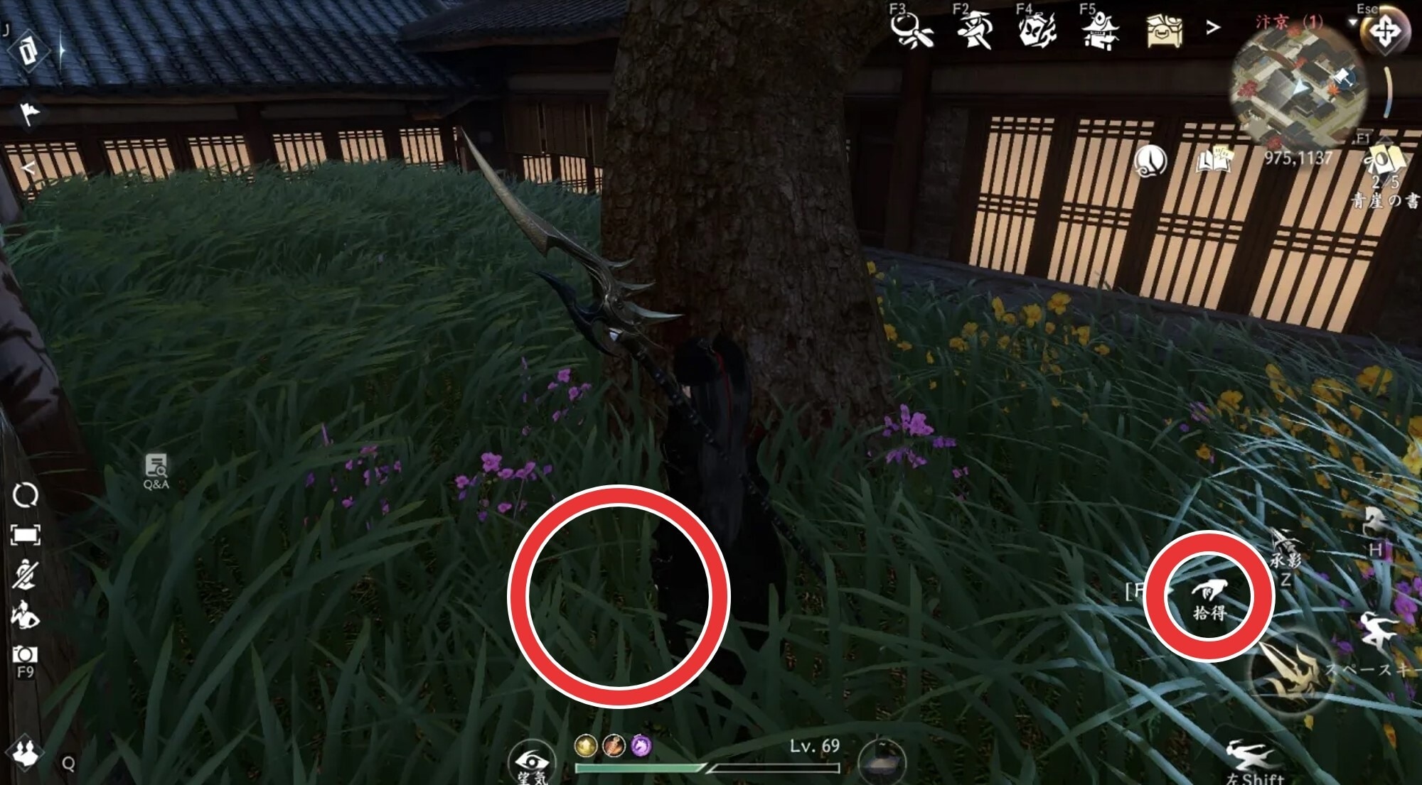 拡大する木の根元道を阻み強奪の奇遇発生には、先ず馬行街付近(975,1137)で棒を拾う必要があります。草木が生い茂った場所の木の根元に落ちているので、近づいて拾いましょう。