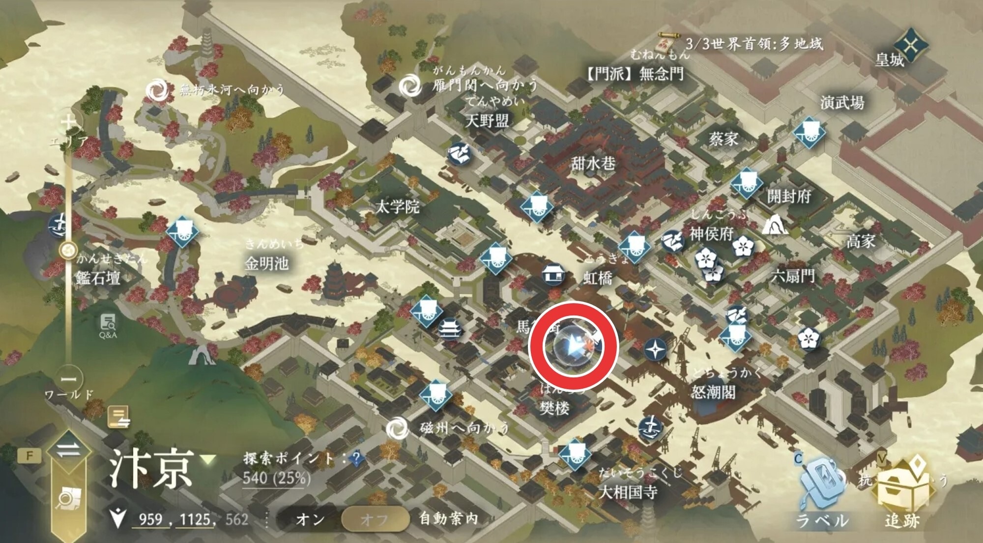 道を阻み強奪の奇遇任務の発生場所は、汴京の座標(960,1178)です。発生前に(975,1137)で棒を拾い、(959,1125)の呉二春に話す必要があります。2つの工程後に(960,1178付近)へいきましょう。