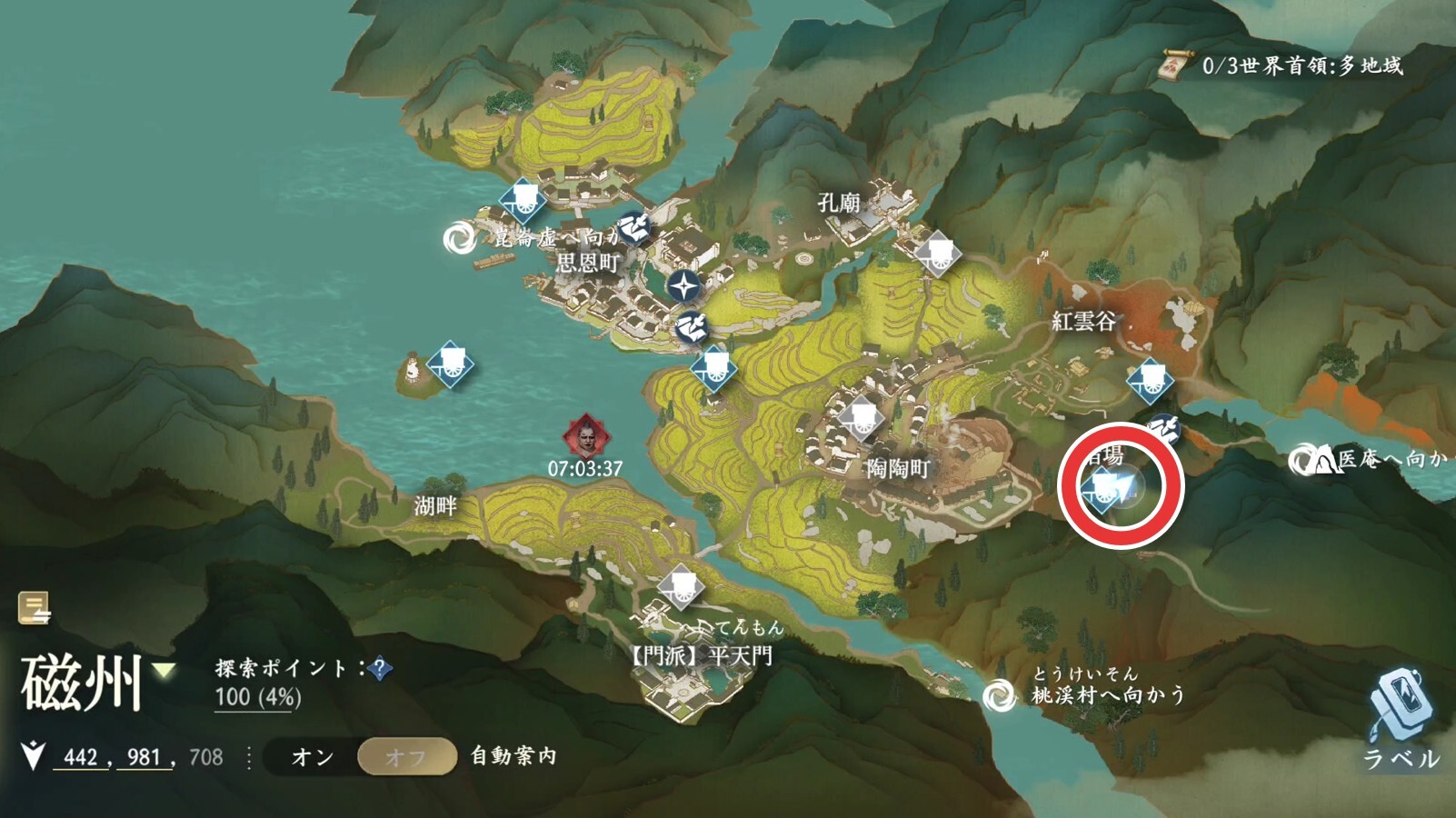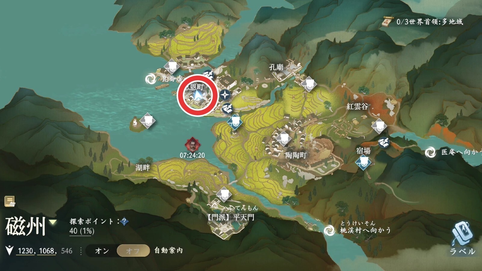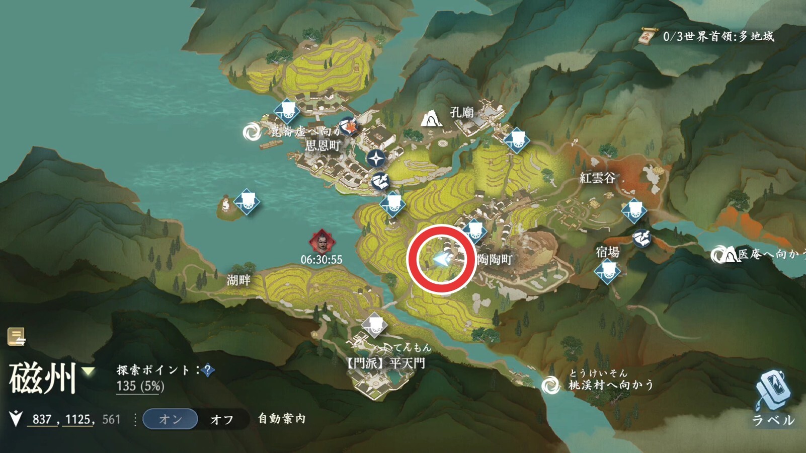 | 磁州に移動して、座標(1230,1068)の蔡店主に金塊を渡して「手がかり一(神速)」を入手 | ||||||||||