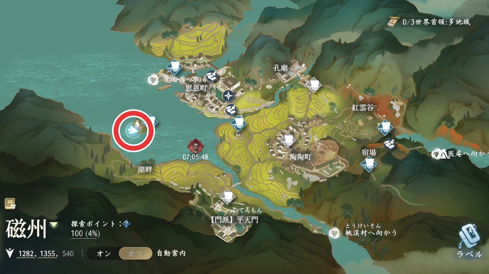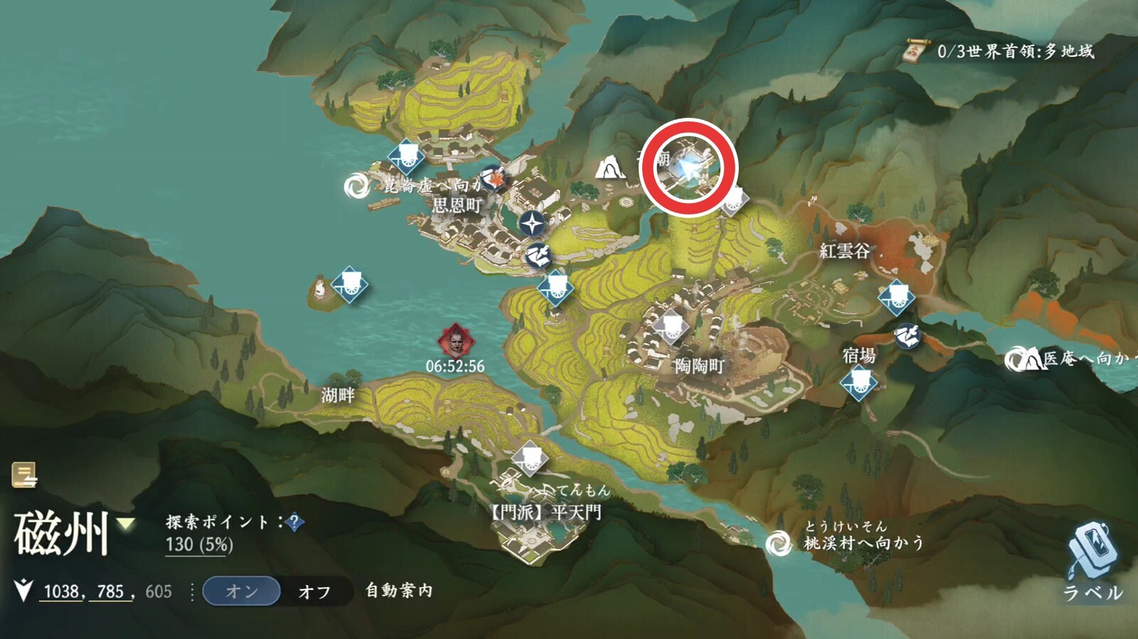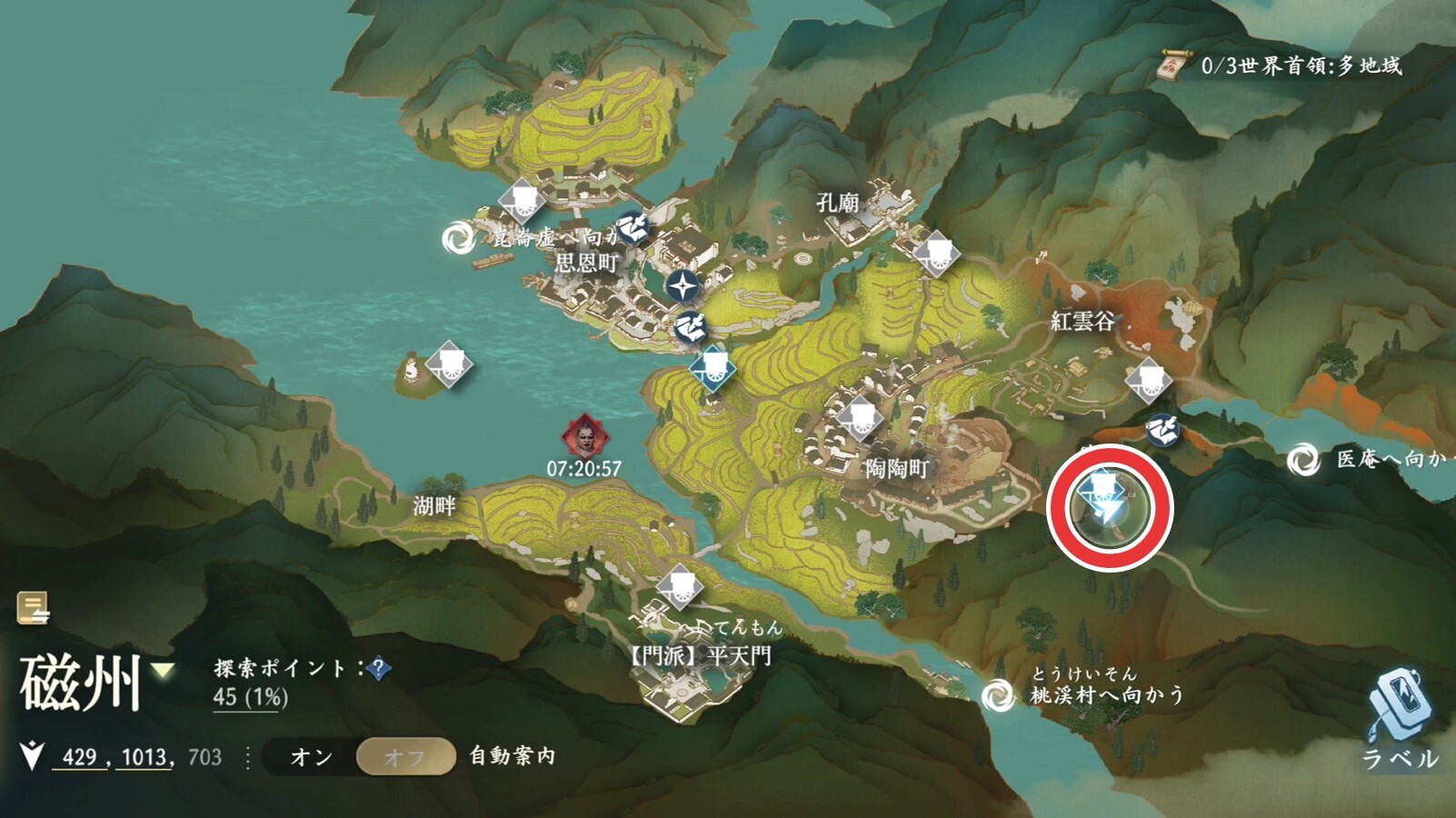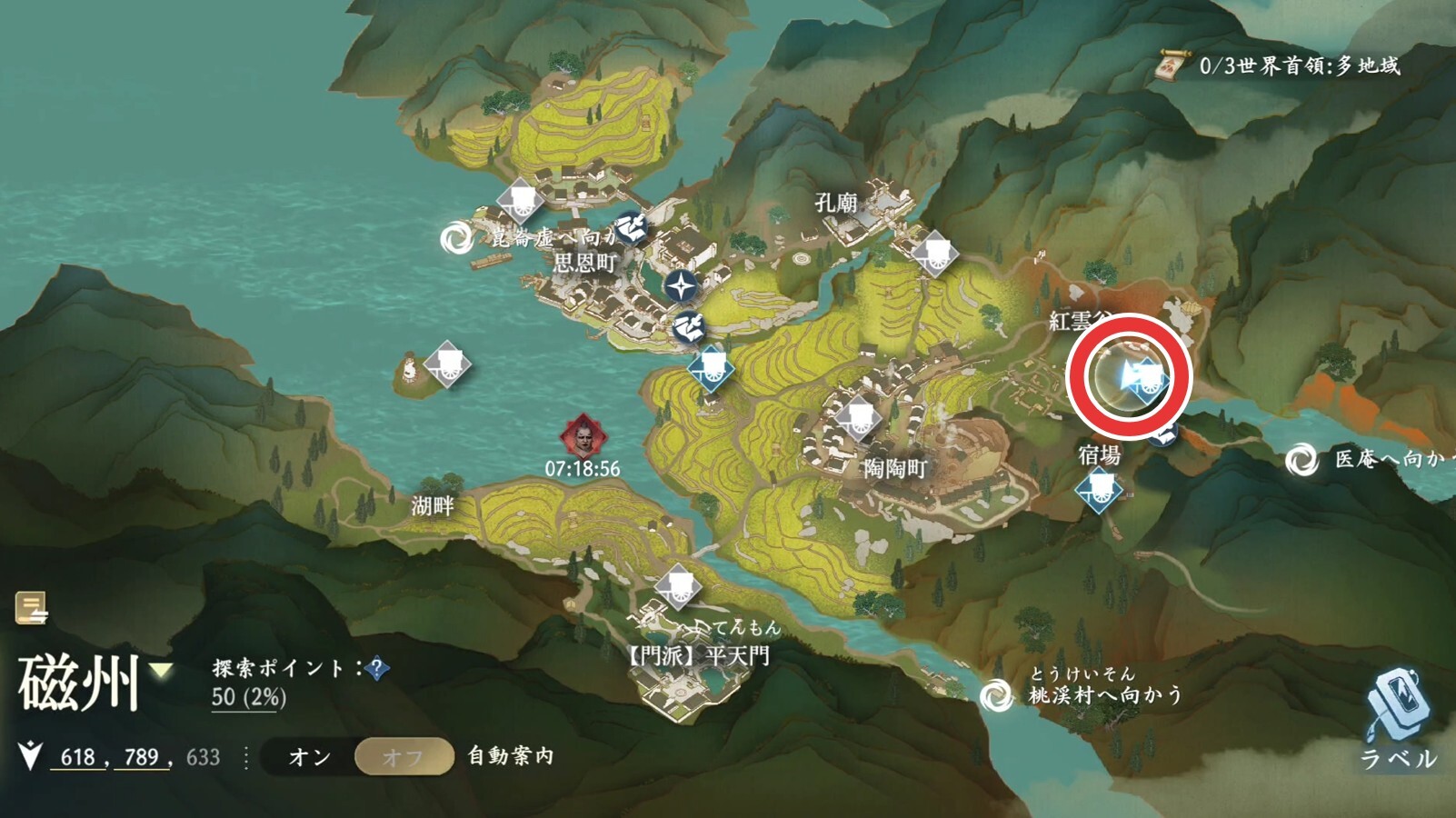 | 磁州に移動して、座標(1230,1068)の蔡店主に金塊を渡して「手がかり一(神速)」を入手 | ||||||||||