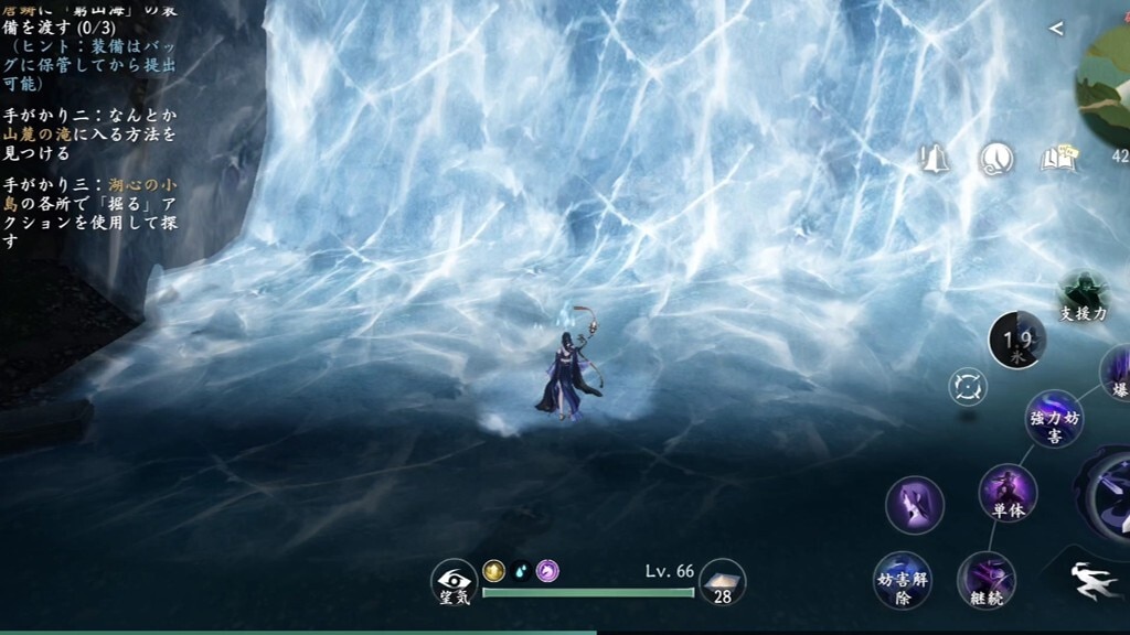| 座標(423,729)の滝を「寒氷神掌」で凍らせて、 任意のスキル(氷以外)で壊して中に入る |