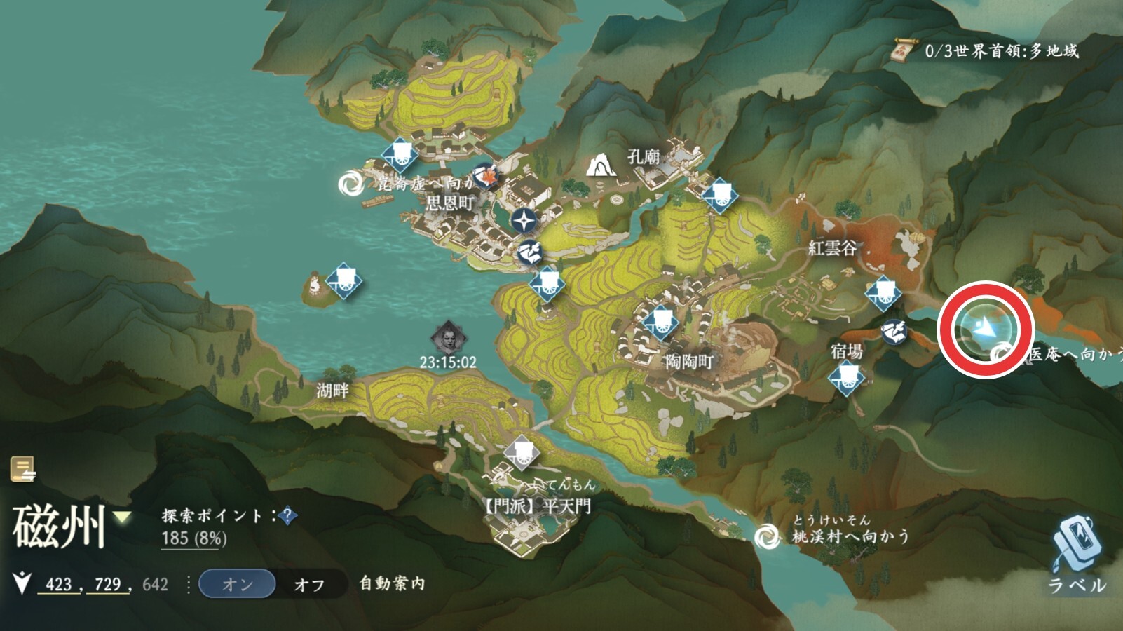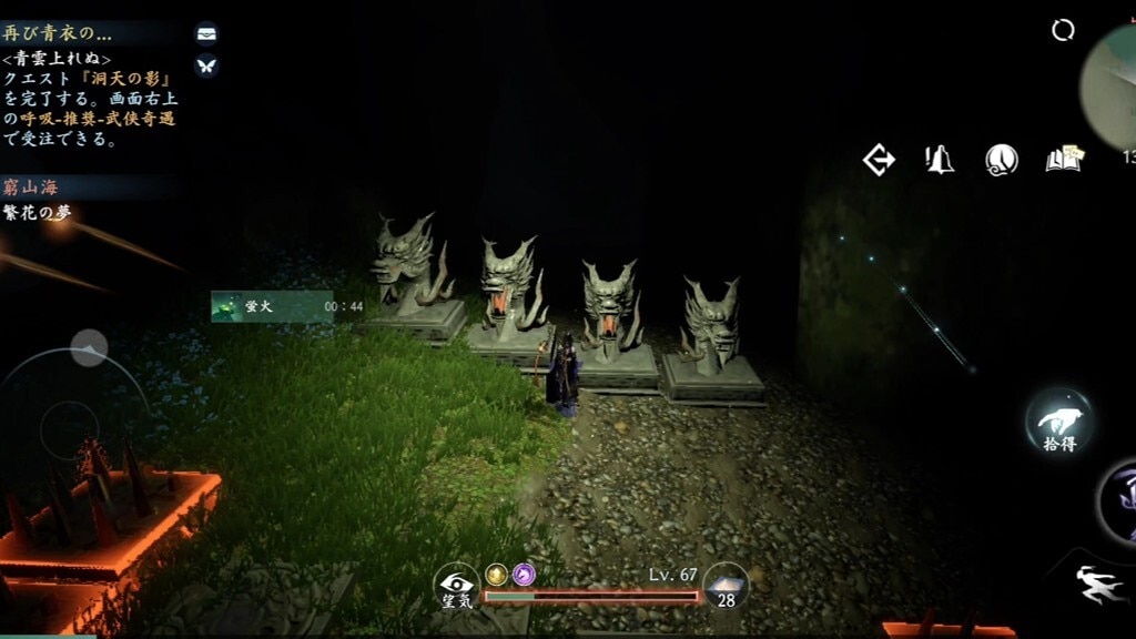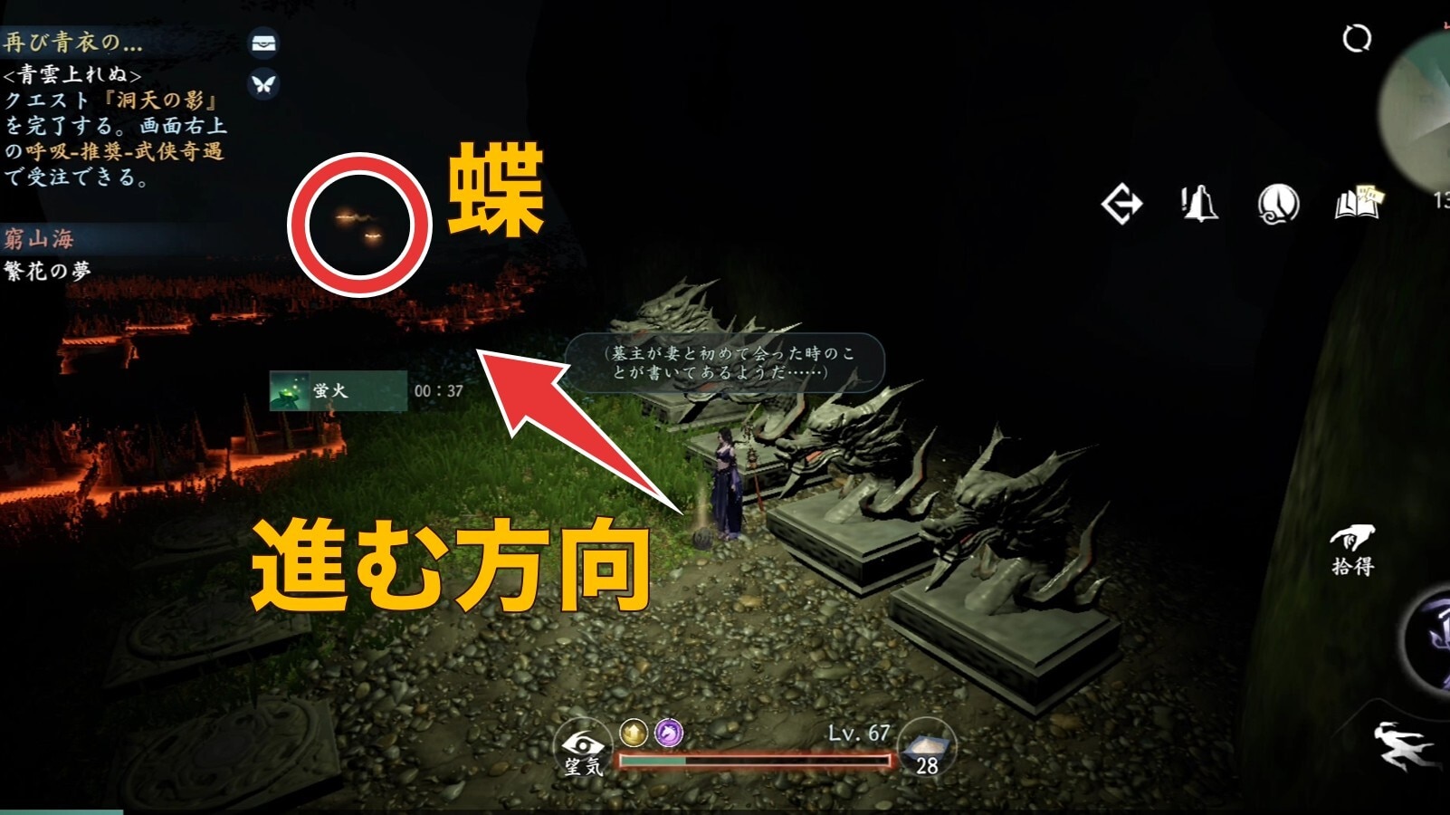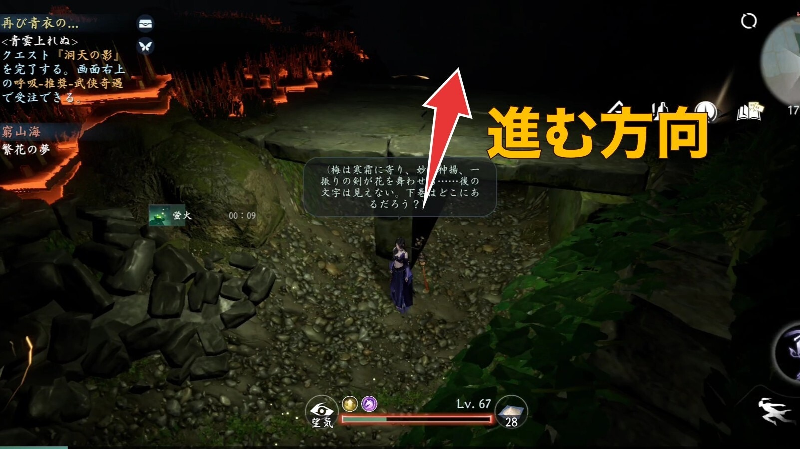 | 座標(429,1013)の宝箱に「烈火燎原」や「風起雲湧」を使用して「手がかり三(石精)」を入手 | ||||||||||