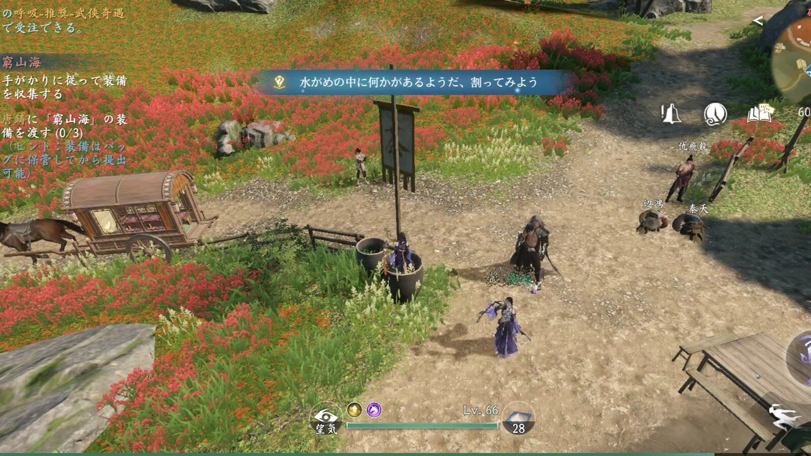 | 座標(605,764)の水がめを攻撃で壊して、 「手がかり九(帰る処も知らず(流浪))」を入手 |