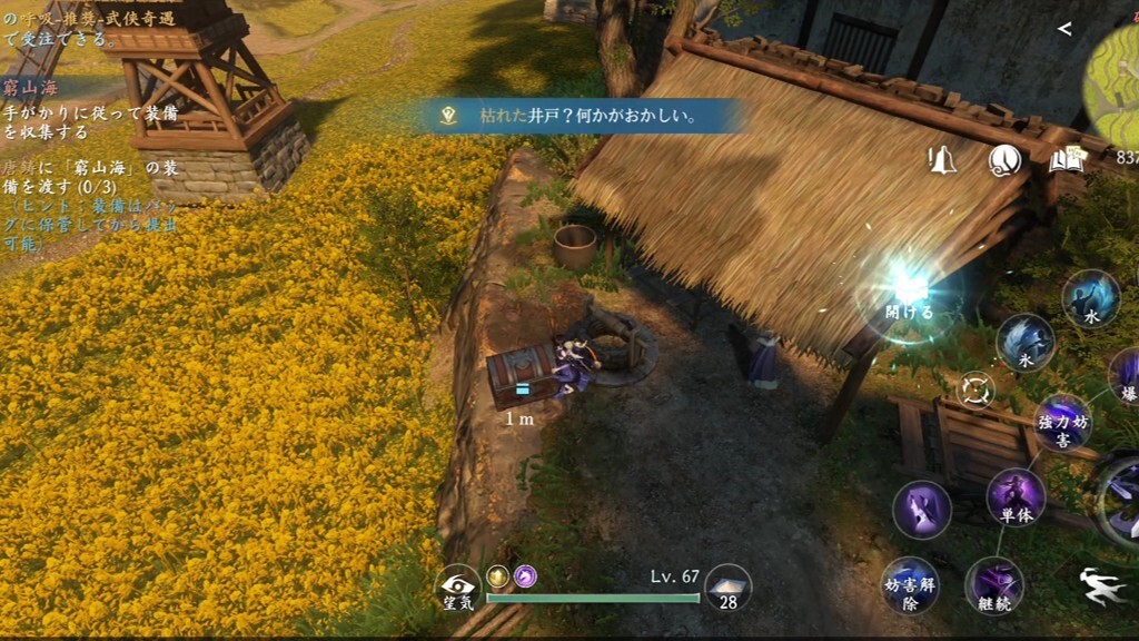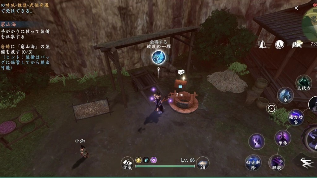 | 座標(837,1125)の井戸に「蛟龍の一躍」を使用して、宝箱から「手がかり十二(他山はなお青し(他にも青い山)」入手 ▼蛟龍の一躍(水スキル)の習得方法 |