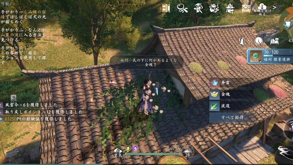 | 磁州に移動して、座標(434,975)の屋根上にある金塊を入手 | ||||||||||