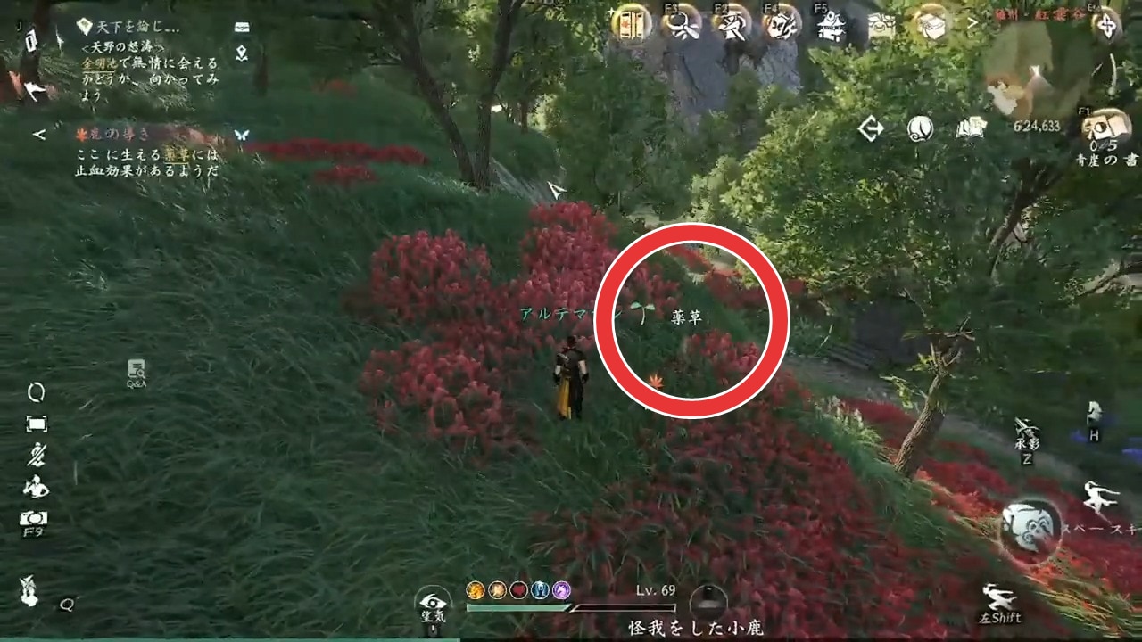 | 2 | 拡大する近くに出現する薬草を拾って小鹿に渡す |
