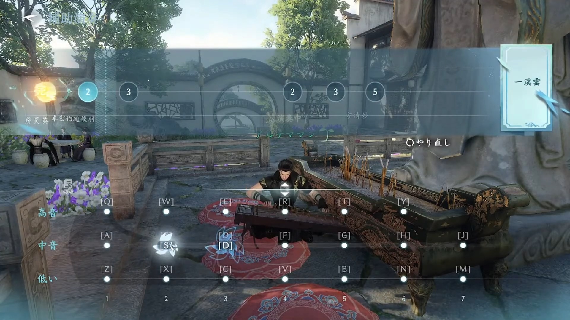 | 6 | 拡大する音ゲーが始まるのでクリアすると、「琴の中の紙片」を入手 |