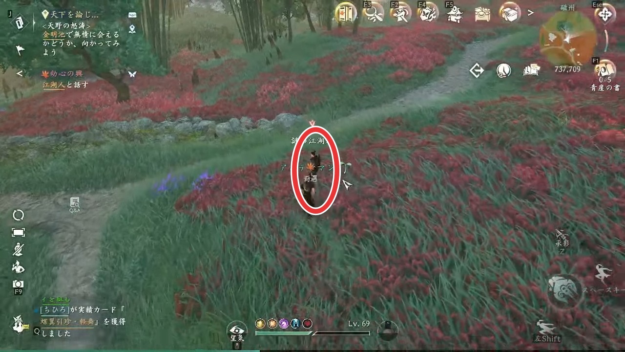 | 4 | 拡大する紙片に示された場所(743,713)にいる謎の江湖人に話し掛けると戦闘 |