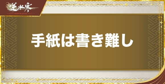 逆水寒の手紙は書き難し(てがみはかきがたし)の発生場所と報酬をご紹介。奇遇の攻略手順についても記載しています。
