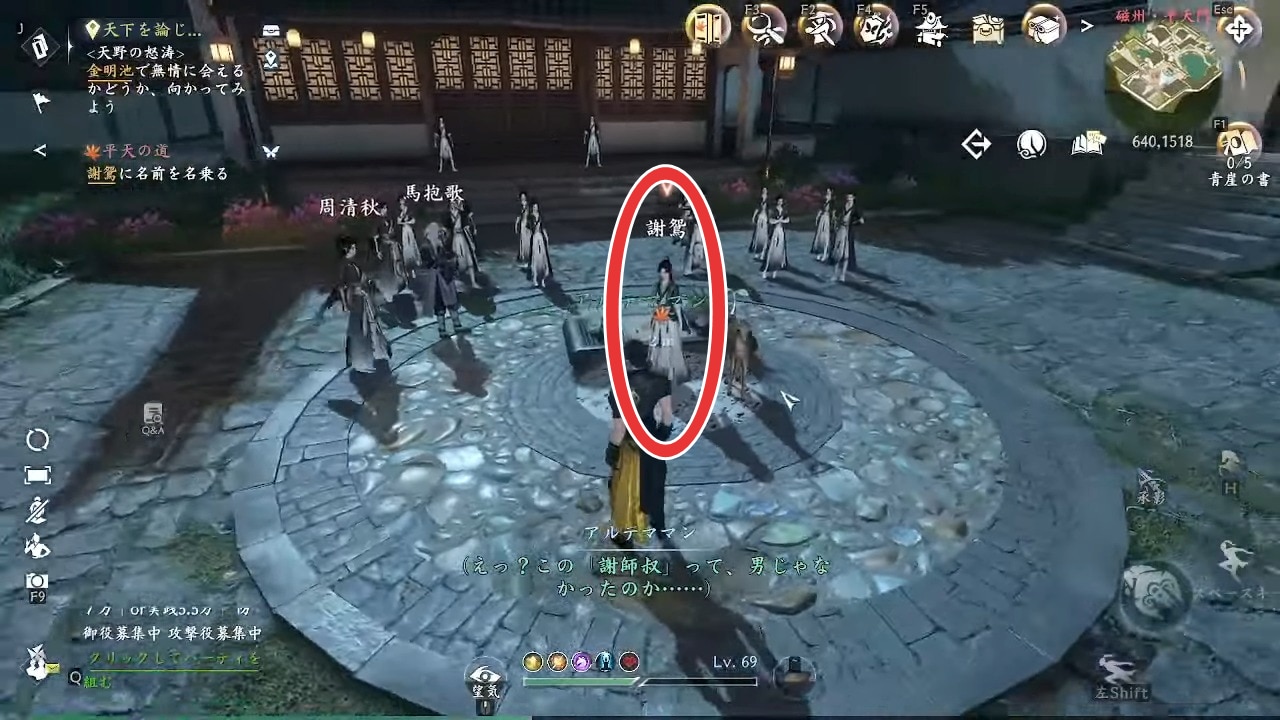 平天の道は、奇遇任務・鹿の導きから連続して発生するため、先に鹿の導きをクリアしましょう。鹿の導きは磁洲(637,632)で発生します。