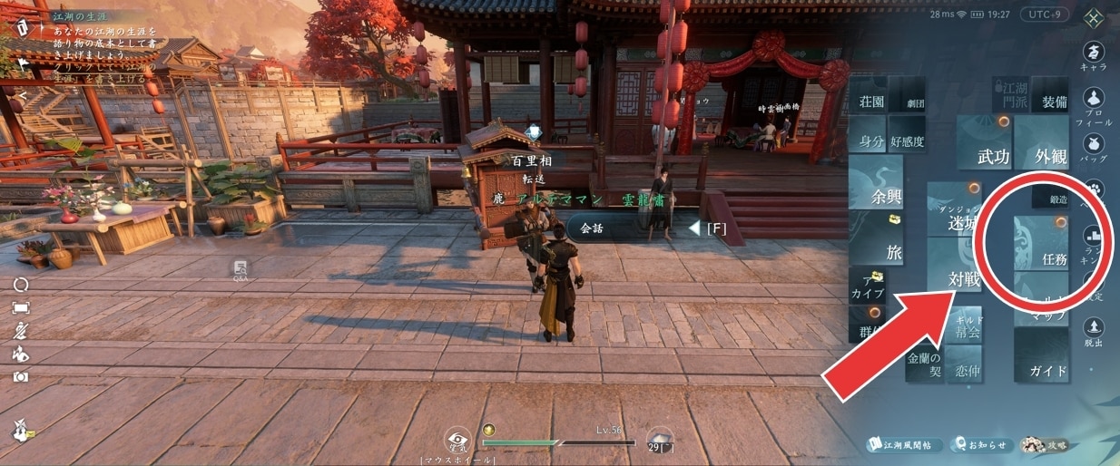 | 1 | 拡大するメニューの「任務」を選択する |