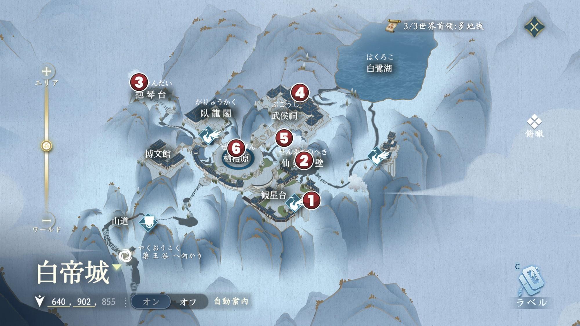 白帝城では、移動および転送スポットだけです。アイテム等は購入できませんが、神相課業の指導者がいるため、神相の課業を進めたい場合に訪れましょう。
