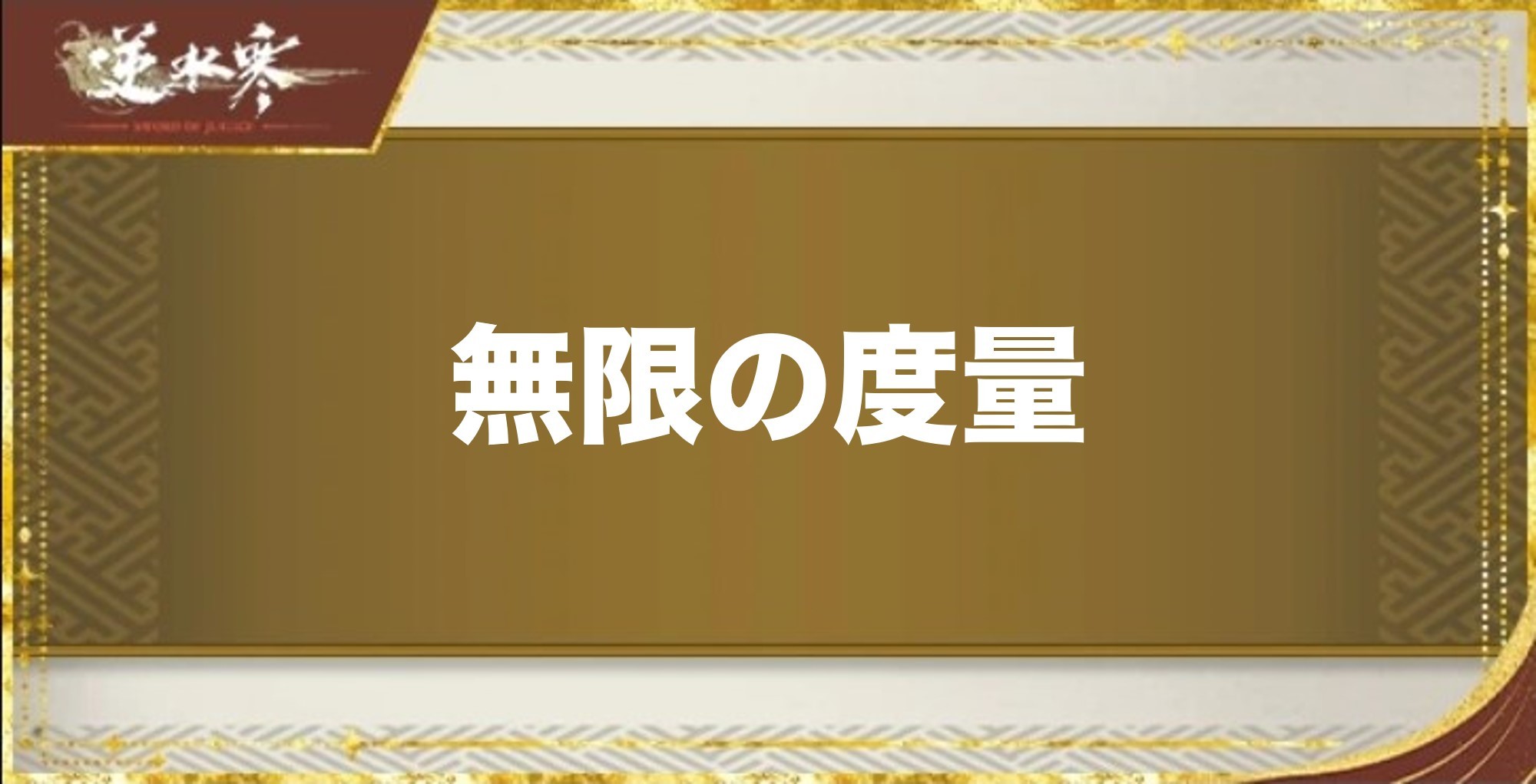 逆水寒の無限の度量の性能と評価をご紹介。無限の度量の攻撃範囲やクールタイムについても記載しています。
