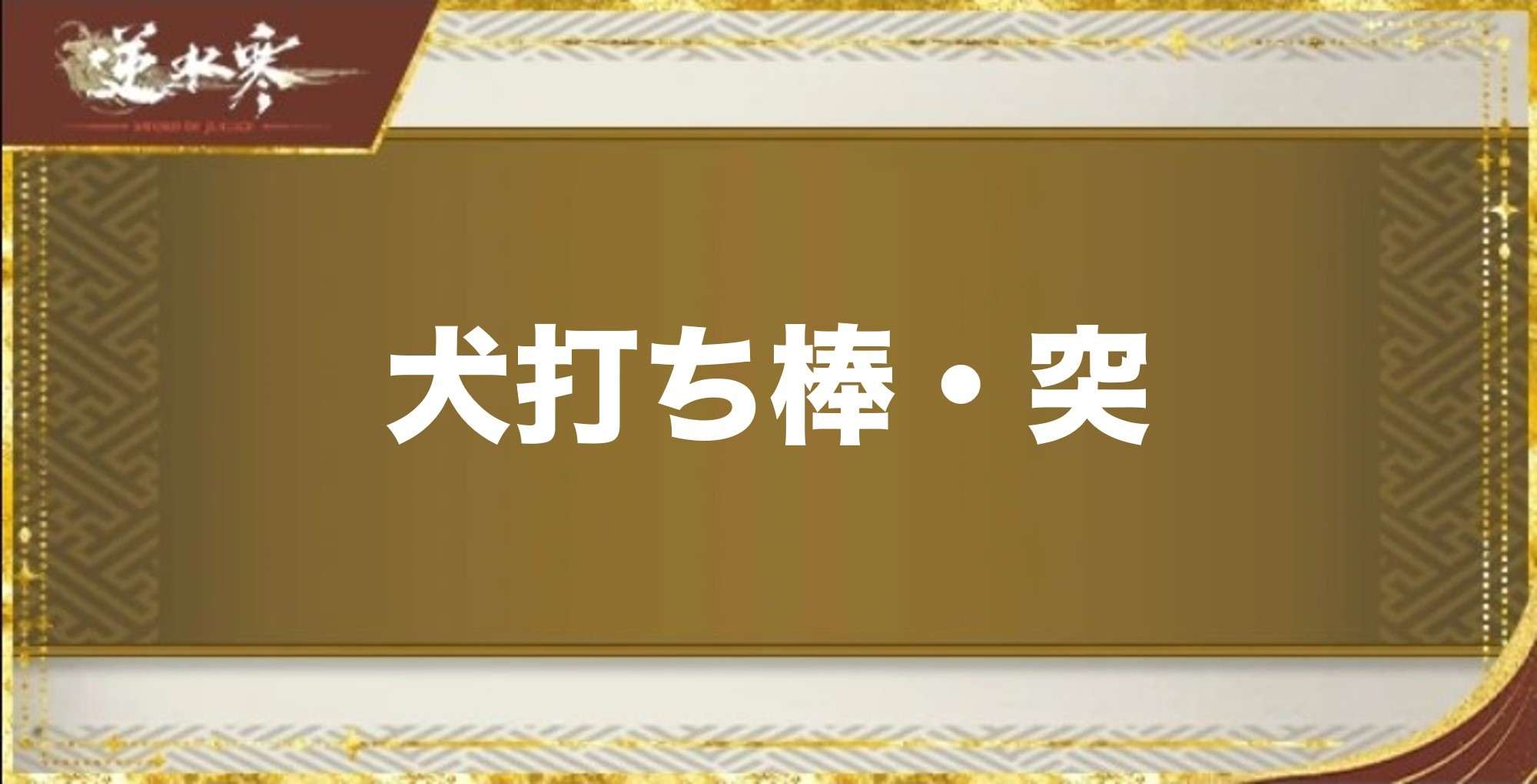逆水寒の犬打ち棒・突の性能と評価をご紹介。犬打ち棒・突の攻撃範囲やクールタイムについても記載しています。