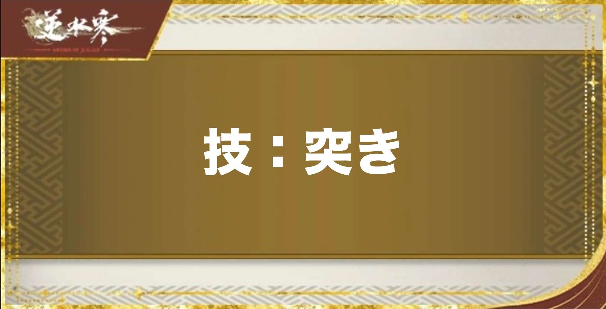 逆水寒の技:突きの性能と評価をご紹介。技:突きの攻撃範囲やクールタイムについても記載しています。