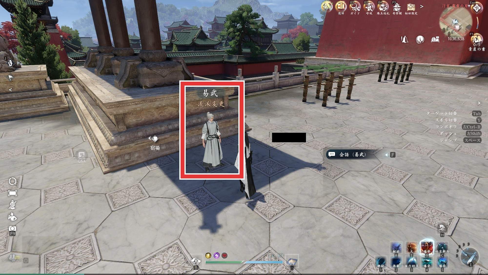 拡大する易武前提条件を満たしたら、演舞場(1036,638)の易武に話しかけましょう。易武に話しかけて会話を進めると転職手続きを開始できます。