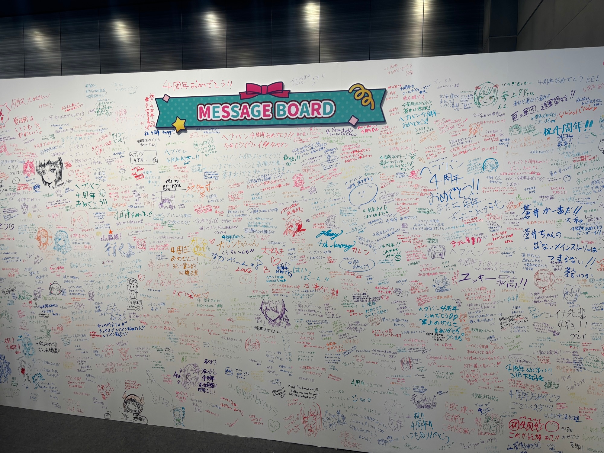 会場に設置されていた4周年記念メッセージボードは、ユーザーの熱い想いでいっぱいに埋まっていました。