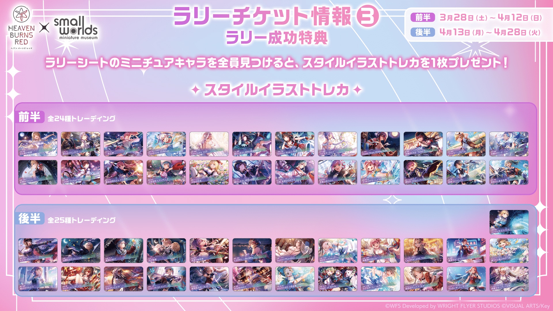 スタイルトレカは、前半24種類、後半25種類の計49種類で、ランダムな1枚を入手できます。ラリーの報酬は3階のカウンターで受け取れました。