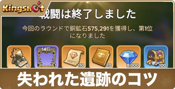 キングショットの失われた遺跡の立ち回りのコツを紹介。実際に上位入賞できるかの検証、検証結果でわかったことを記載しています。失われた遺跡イベントに挑戦する際の参考にしてください。