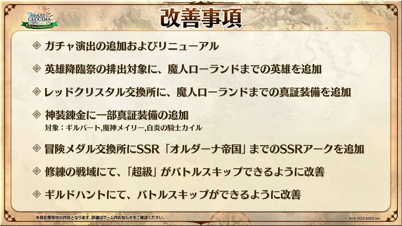 ラスクラ(ラストクラウディア)の6.5周年記念のイベントやキャンペーン、ガチャ情報をまとめてご紹介。新キャラや新アーク、限定イベントや記念キャンペーンについて記載しています。