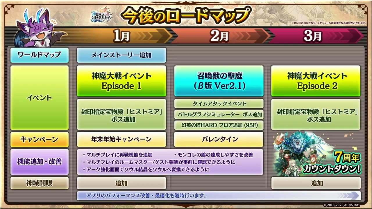 2026年1月以降のロードマップが公開されました。年末年始キャンペーン以外にもメインストーリーの追加や神魔対戦イベント、ヒストミアのボス追加など、様々な施策が開催予定です。