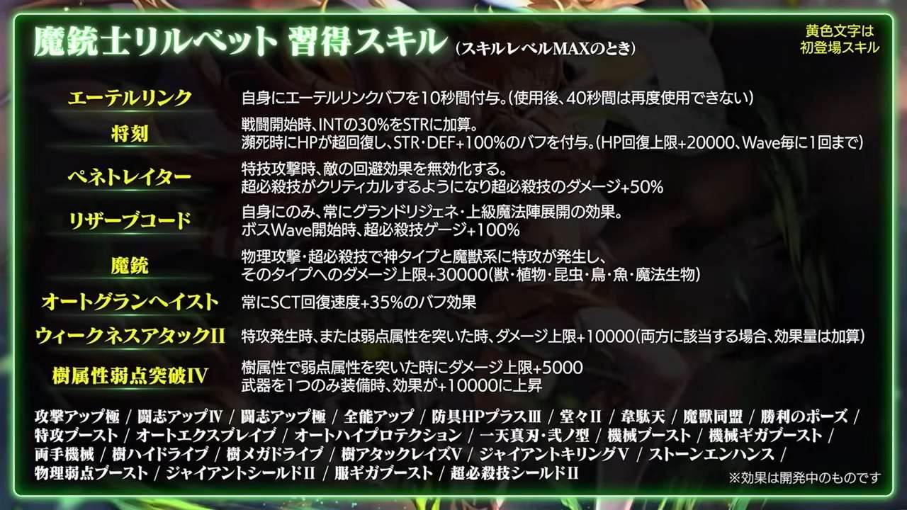 ラスクラ(ラストクラウディア)の魔銃士リルベットの評価とスキルについてご紹介。魔銃士リルベットにおすすめのアークや隠しスキル、特技、超必殺技、個性、ステータス、属性耐性、状態異常耐性についても記載しています。