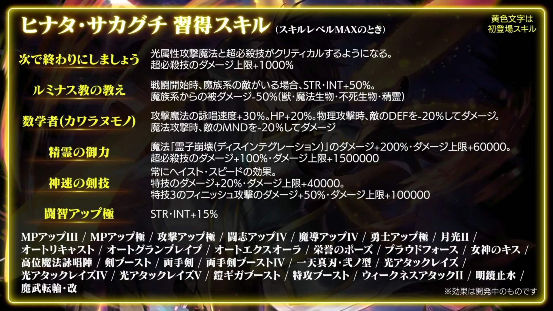 - ・ハーベストフェスティバルの性能 / 盟友(我がズッ友よ)の性能