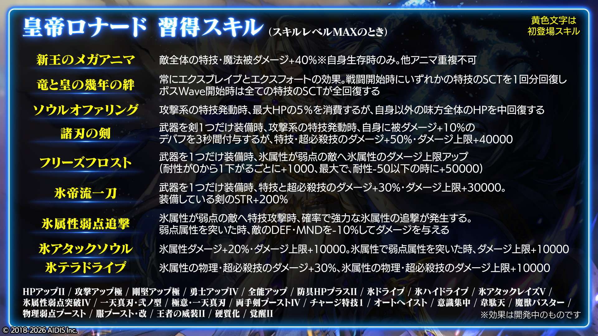 - ・竜王アルクの性能 / 皇帝ロナードの性能 / ドラゴンソウルの性能