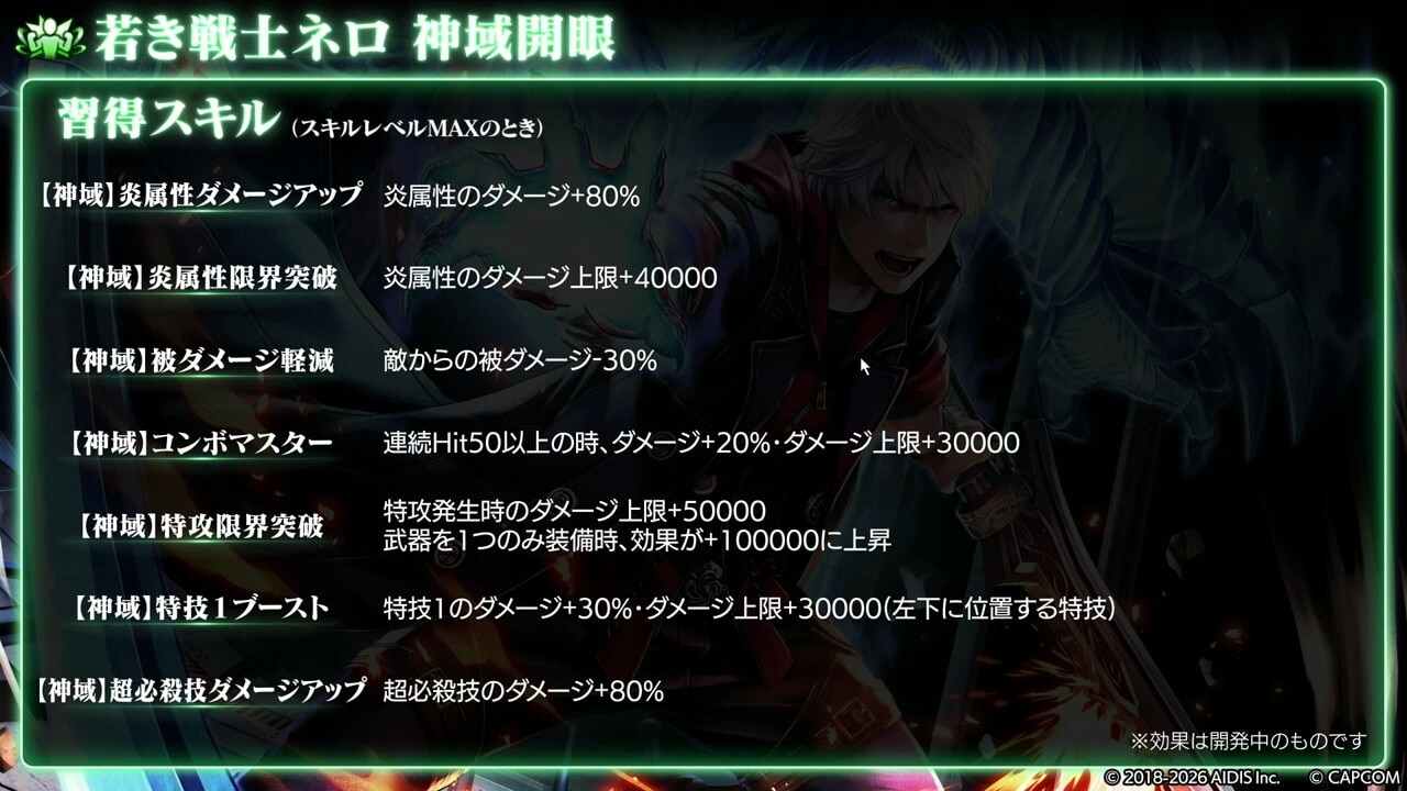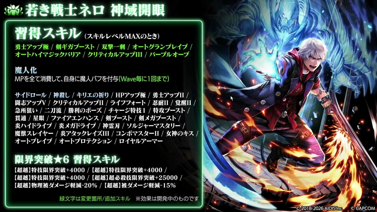 若き戦士ネロは、火力が大幅に強化されました。特攻発生時のダメージ上限アップに加え、パープルオーブの習得や魔人バフの複数回付与が可能になったので、最前線での活躍が見込めます。