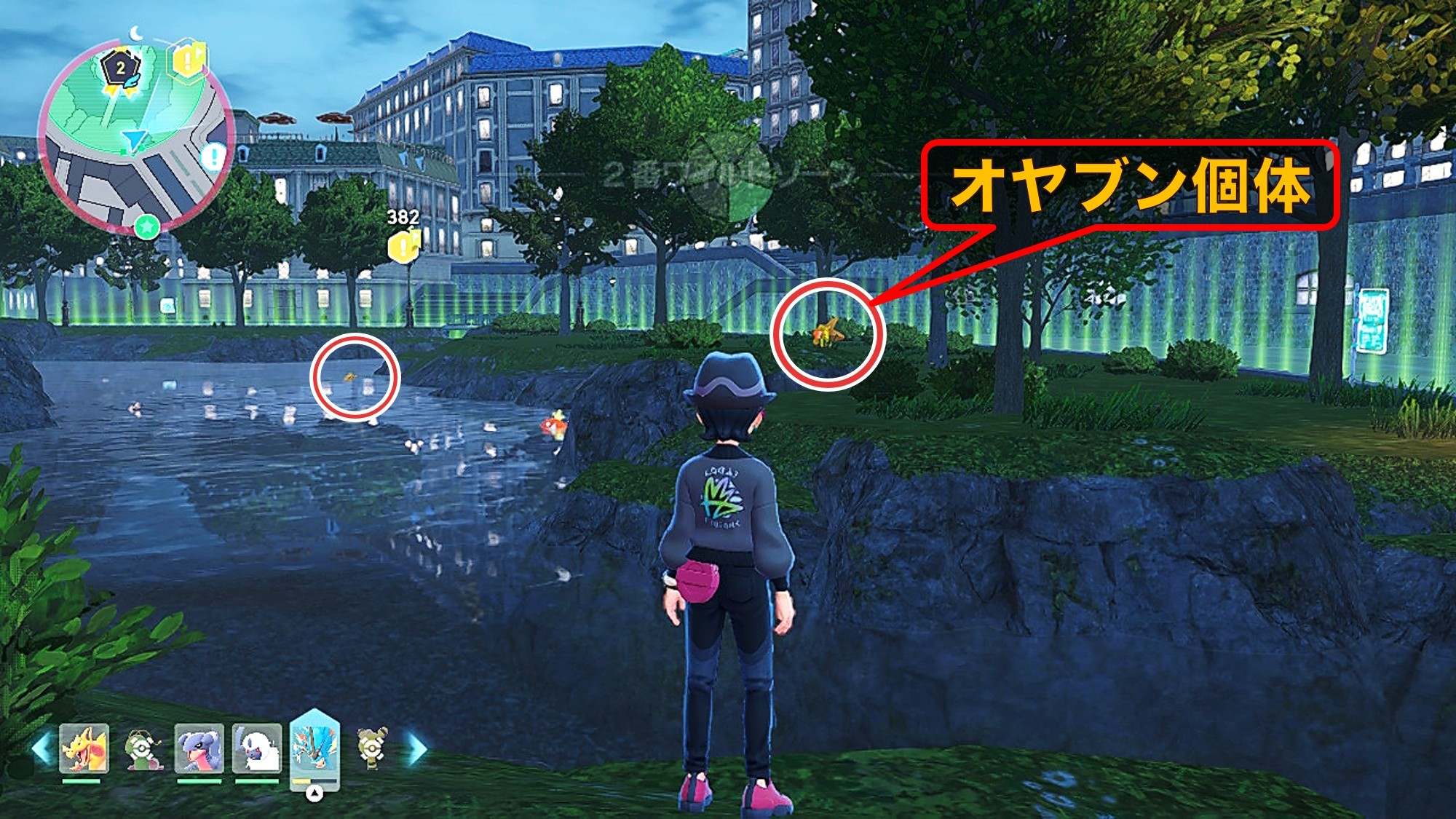 ヒトデマン色違い厳選をしていると、オヤブンヒトデマンの色違いも狙えます。ワイルドゾーン10では昼夜問わず出現するので、ベンチで時間を変える前に周辺を確認してみましょう。