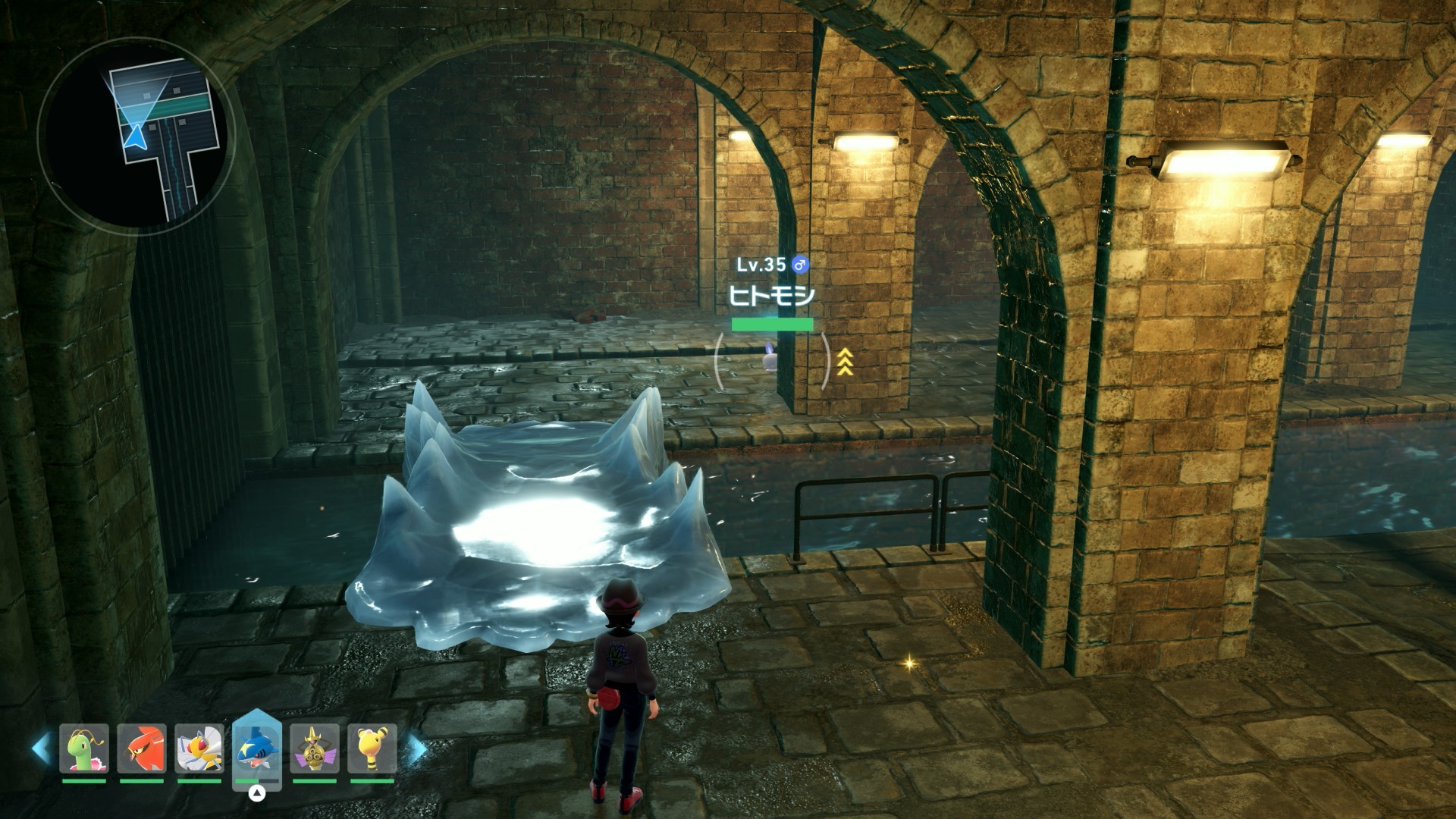 拡大する地下水道に入ったら、氷の橋がある部屋の手前まで進んでヒトモシを読み込みましょう。ヒトモシがリポップする範囲を広げるために必要な工程です。